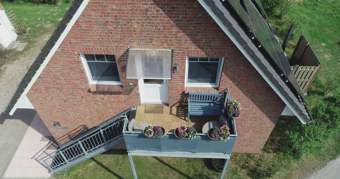 Eigener Eingang mit Außentreppe und Balkon. ist von April bis Oktober mit Gartenmöbeln ausgestattet.