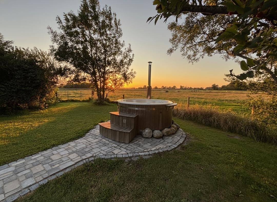 Als besonderes Highlight können optional gegen Gebühr eine Fasssauna sowie ein holzbeheizter Hot-Tub hinzugebucht werden.