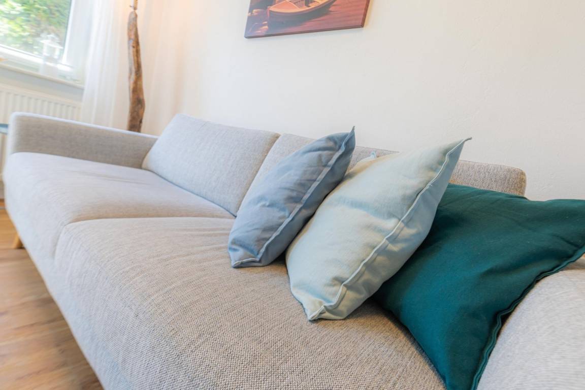 Der Wohnbereich bietet mit einer gemütlichen Couch, Smart-TV und Internetradio angenehme Unterhaltung. Dank WLAN mit Glasfaseranschluss steht Ihnen schnelles Internet zur Verfügung.