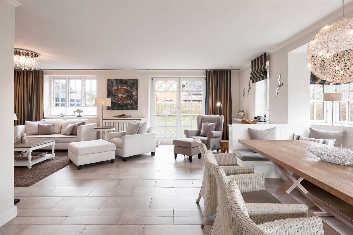 Glauben Sie an Feen? Spätestens, wenn Sie dieses zauberhafte, reetgedeckte Feenhaus" betreten, halten Sie alles für möglich. Hier, in der neuen, großzügig und exklusiv eingerichteten Haushälfte fehlt es an nichts. Ob eine hauseigene Sauna (mit Aussenfenster), ein weißer Kachelofen oder eine gemütliche Eßecke mit großer Fensterfront - erleben Sie hier Ihren Traumurlaub in einer unwiderstehlichen und heimeligen Atmosphäre. Die Terrasse (50 qm) mit bequemen Möbeln sowie ein 350 qm großer Garten runden die Sache ab und lassen Sie jede Stunde Ihres Urlaubes genießen. Wir freuen uns auf Sie!