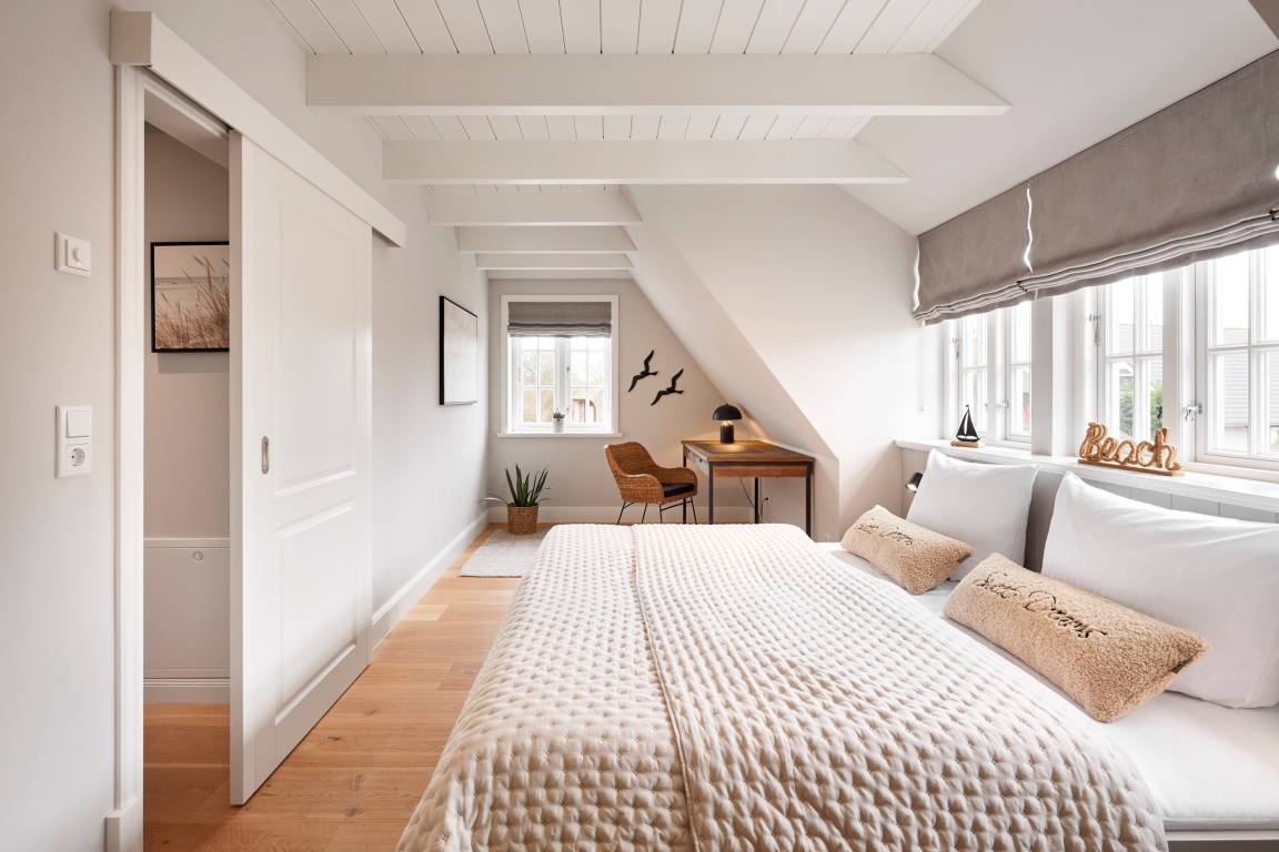 Dieses Reetdach-Doppelhaus liegt am Ortsrand des beschaulichen Friesendorfs Oldsum, auch als Künstlerdorf bezeichnet. Das Haus steht in einer ruhigen Straße am Rande der Marsch, mit kurzen Wegen zum Edeka Markt mit Bäckerei, zu zwei gemütlichen Cafés und zum Dorfgasthof.