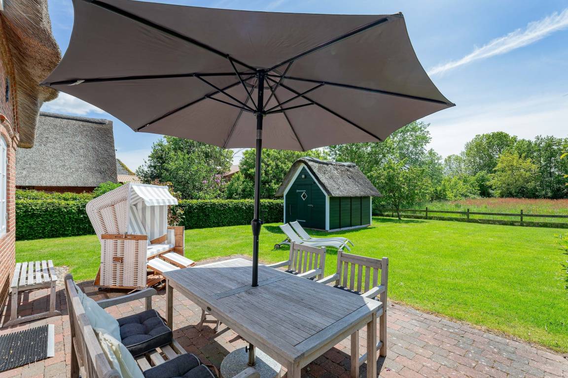 Herzlich willkommen in unserem neuem Feriendomizil in ländlicher Idylle von Oldsum. Das Friesenhaus ist mit viel Liebe im traditionellen inseltypischen Baustil direkt am gewachsenen Ortskern entstanden. Ein typischer Friesenwall, Linden und Obstbäume rahmen das Kleinod ein und lassen jede Hektik und Stress vergessen. Auch im Haus zeigt sich die alte friesische Bauweise mit Balkendecken, schönen Holzarbeiten und traditionellen Details, jedoch mit neuester Technik wie Fußbodenheizung und großzügiger, exklusiver Ausstattung. Genießen Sie den Aufenthalt in der 130 qm großen Friesen-Kate ebenerdig und unter dem gemütlichen Dach des Hauses mit bis zu 5 Personen. Nutzen Sie den großen, eingezäunten Sommergarten mit Blick in die herrliche Natur und auf das Reet gedeckte Friesendorf.