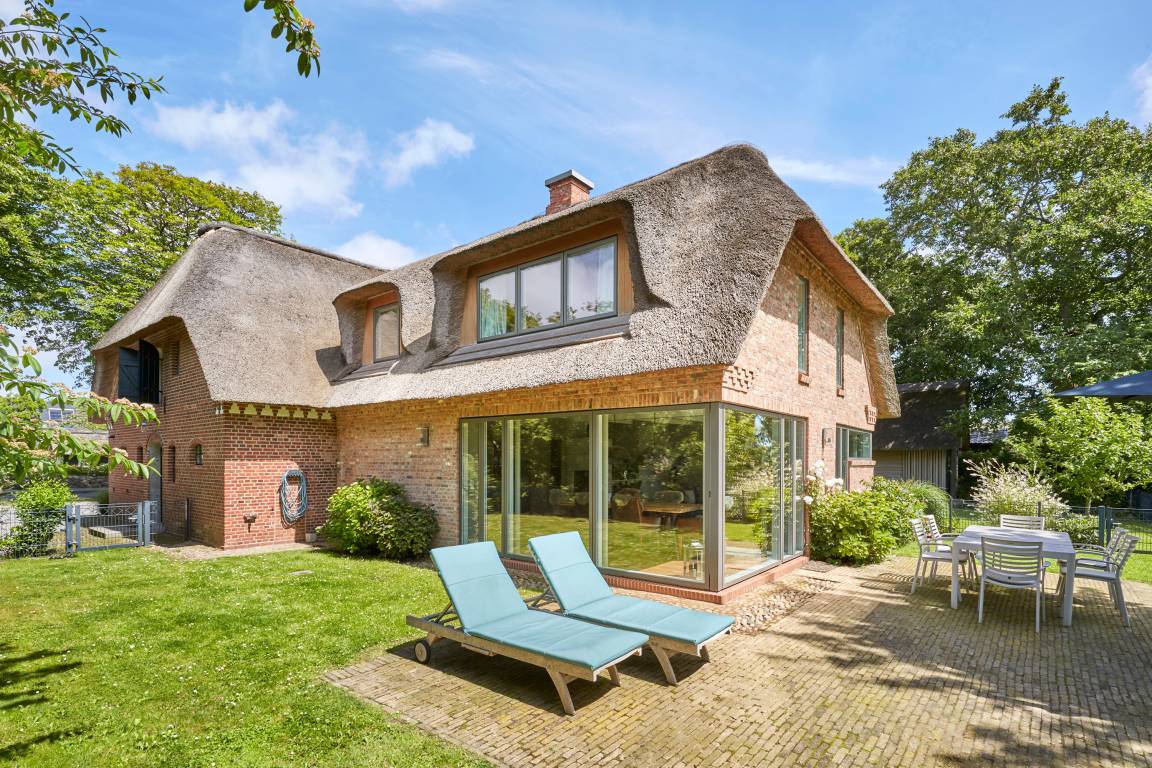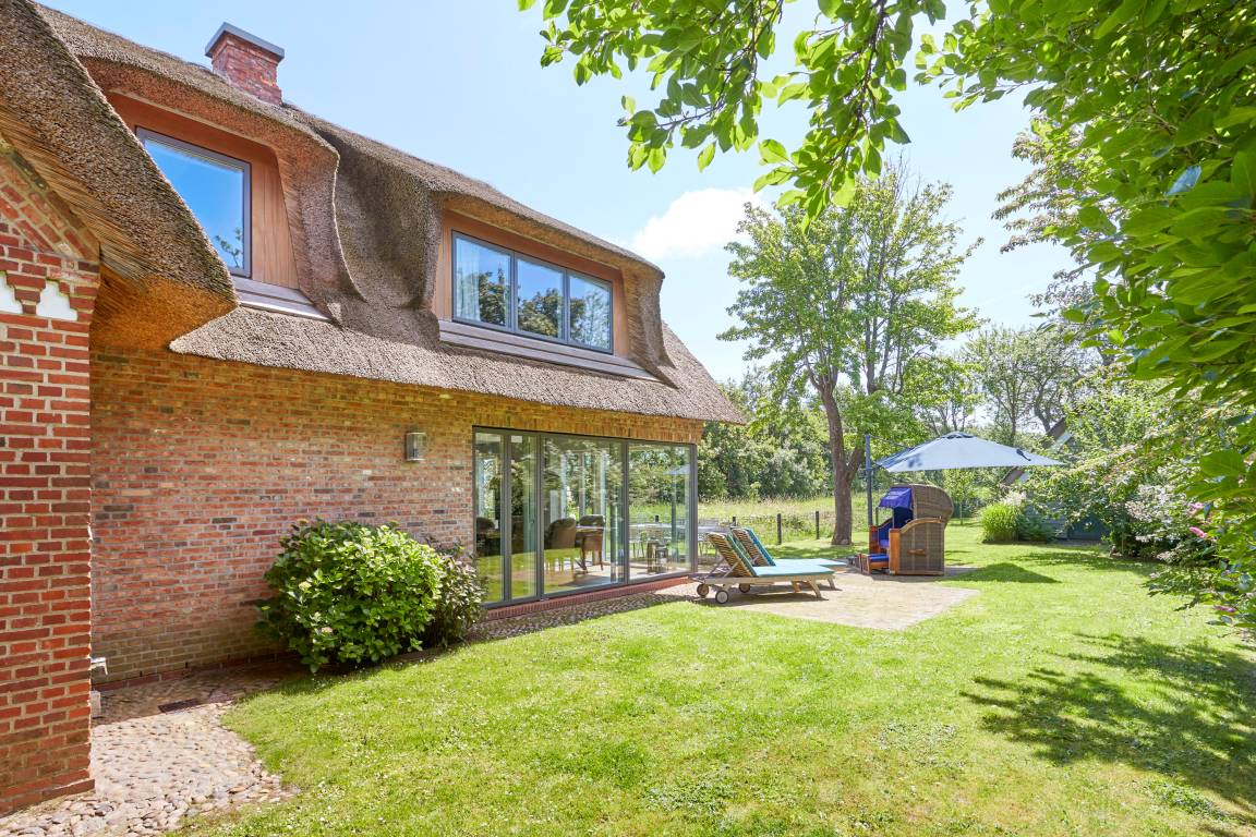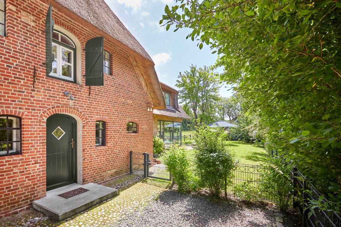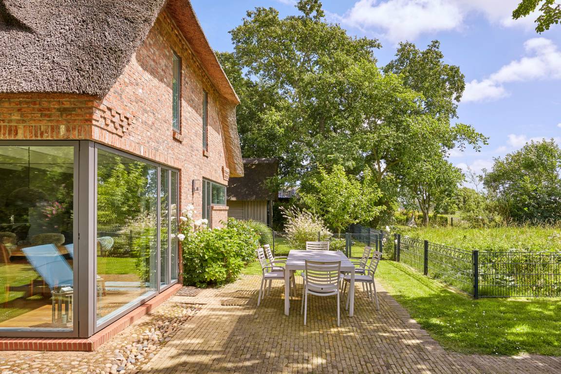 Verlieben Sie sich auf den ersten Blick in das über 100 Jahre alte, reetgedeckte friesische Bauernhaus „Maria Gardina 1530"[nbsp] - die Nachbarhaushälfte nennt sich "Maria Gardina 1903" - in wundervoller Lage mit traumhaftem Blick auf die freie Geestlandschaft und den sonnigen Bauerngarten. In der Atmosphäre eines großzügigen Privathauses mit Kunst, außergewöhnlicher Einrichtung und hochwertiger Haustechnik werden alle individuellen Wünsche nach Inspiration, Kreativität und Komfort erfüllt. Im Rahmen der denkmalgerechten Restaurierung wurde Wert auf den konsequenten Einsatz nachhaltiger und ökologischer Baustoffe gelegt. Die klare Abgrenzung von Neu zu Alt als spannender Kontrast zieht sich- immer wieder sichtbar- durch das Konzept des gesamten Objektes. Im besonderen Ambiente der exklusiven Sauna mit Raindance- Dusche und marokkanischen Fliesen finden Sie die Ruhe und Entspannung nach einem besonderen Urlaubstag auf Föhr. Der Wohn- und Essbereich bietet durch große Fensterschiebeelemente einmalige Blicke in den sonnigen Garten mit hochwertigen Outdoormöbeln.
