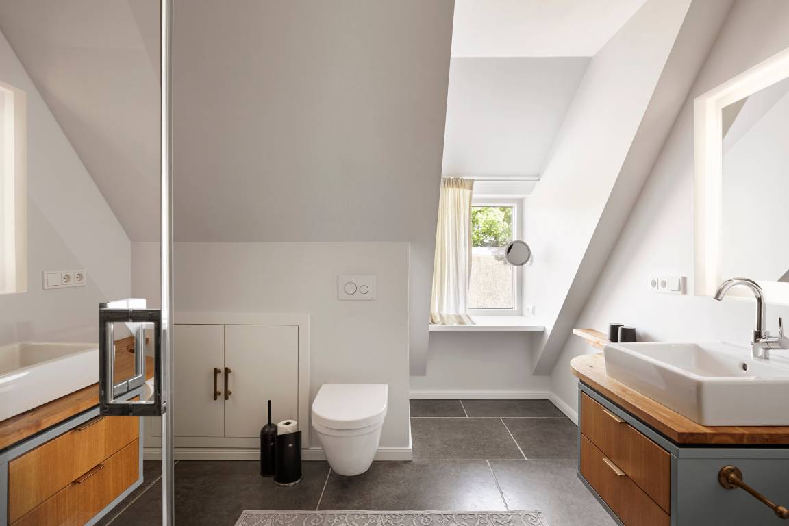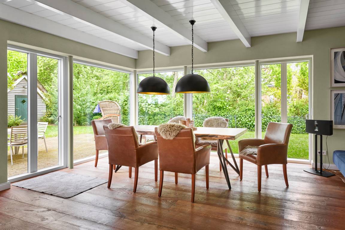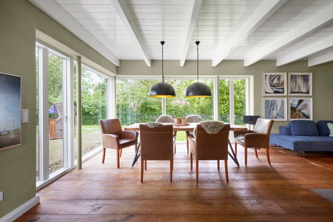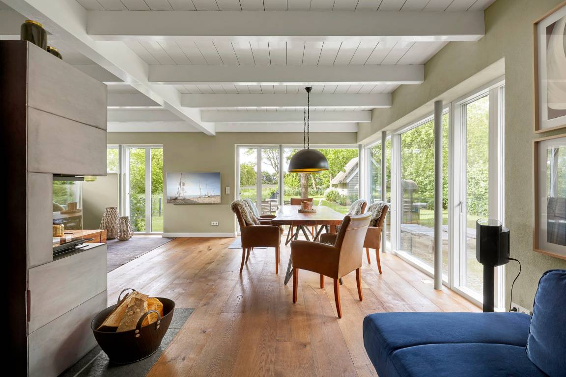 Verlieben Sie sich auf den ersten Blick in das über 100 Jahre alte, reetgedeckte friesische Bauernhaus „Maria Gardina 1530"[nbsp] - die Nachbarhaushälfte nennt sich "Maria Gardina 1903" - in wundervoller Lage mit traumhaftem Blick auf die freie Geestlandschaft und den sonnigen Bauerngarten. In der Atmosphäre eines großzügigen Privathauses mit Kunst, außergewöhnlicher Einrichtung und hochwertiger Haustechnik werden alle individuellen Wünsche nach Inspiration, Kreativität und Komfort erfüllt. Im Rahmen der denkmalgerechten Restaurierung wurde Wert auf den konsequenten Einsatz nachhaltiger und ökologischer Baustoffe gelegt. Die klare Abgrenzung von Neu zu Alt als spannender Kontrast zieht sich- immer wieder sichtbar- durch das Konzept des gesamten Objektes. Im besonderen Ambiente der exklusiven Sauna mit Raindance- Dusche und marokkanischen Fliesen finden Sie die Ruhe und Entspannung nach einem besonderen Urlaubstag auf Föhr. Der Wohn- und Essbereich bietet durch große Fensterschiebeelemente einmalige Blicke in den sonnigen Garten mit hochwertigen Outdoormöbeln.