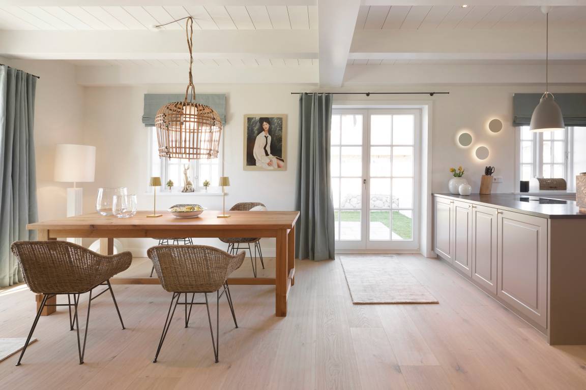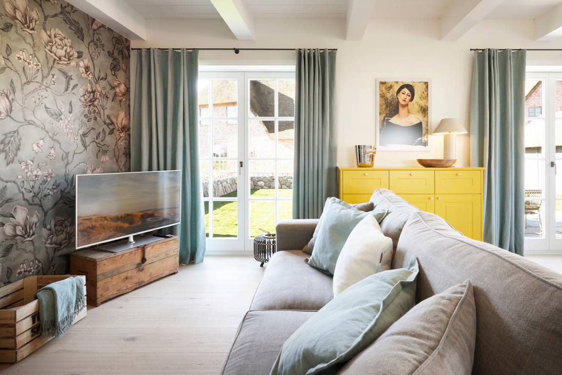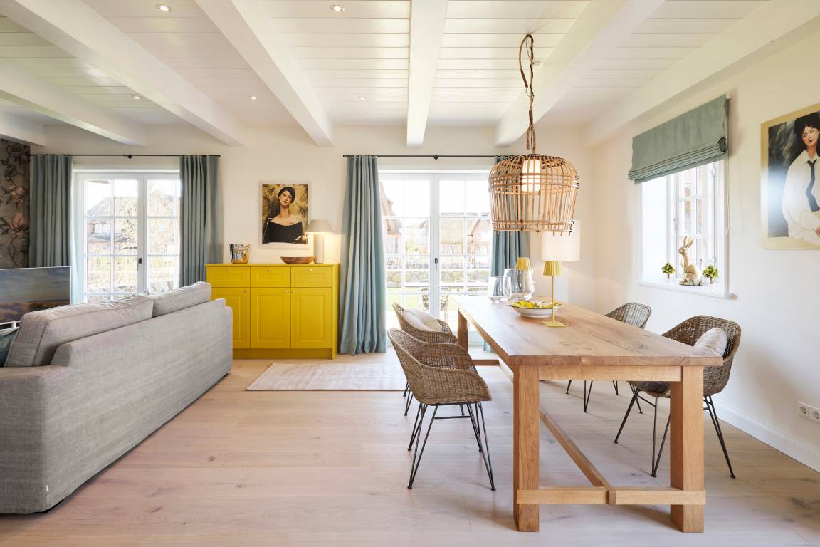 Wir begrüßen Sie in der Marschkajüte. Die Nähe zur Marsch und die Liebe zum norddeutschen Lebensstil waren Namenspaten für dieses Urlaubsdomizil. In bester Nachbarschaft reetgedeckter Friesenhäuser befindet sich diese schöne Reetdachdoppelhaushälfte am Rande von Oldsum. Eine moderne, hochwertige und gemütliche Einrichtung, gepaart mit etwas Inselflair, macht den Urlaub zum Wohlfühlerlebnis. Sanfte Farben wie Eukalyptusgrün und frisches Zitronengelb [nbsp]werden kombiniert. Spüren Sie den leichten Nordseewind beim Frühstück auf der Terrasse, dann geht's zur Radtour über die Insel. Ein Abendspaziergang zum Naturstrand in etwa 1300 Metern Entfernung und danach gemütlich am Kamin entspannen, so lässt man einen perfekten Urlaubtag ausklingen.
