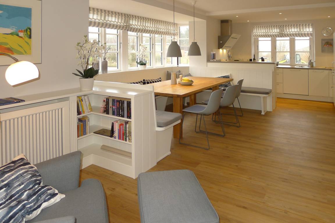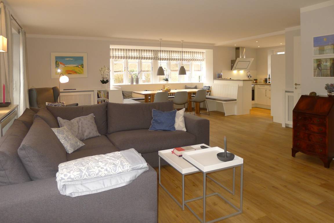 Das Dorf Oldsum, genannt das Künstlerdorf, befindet sich im westlichen Teil Föhrs. Das Haus steht in einer ruhigen Straße am Rande der Marsch, mit kurzen Wegen zum Edeka Markt mit Bäckerei, zu zwei gemütlichen Cafés und zum Dorfgasthof. Das Reetdachhaus liegt direkt am ausgeschilderten Radwanderweg. Die Haushälfte ist großzügig und hell eingerichtet. Zwei Sonnenterrassen mit südlicher und westlicher Ausrichtung laden zum Sonnenbaden und Grillen ein. Sollten Sie mit einem Elektroauto anreisen, so befindet sich nahe gelegen eine öffentliche Ladesäule.