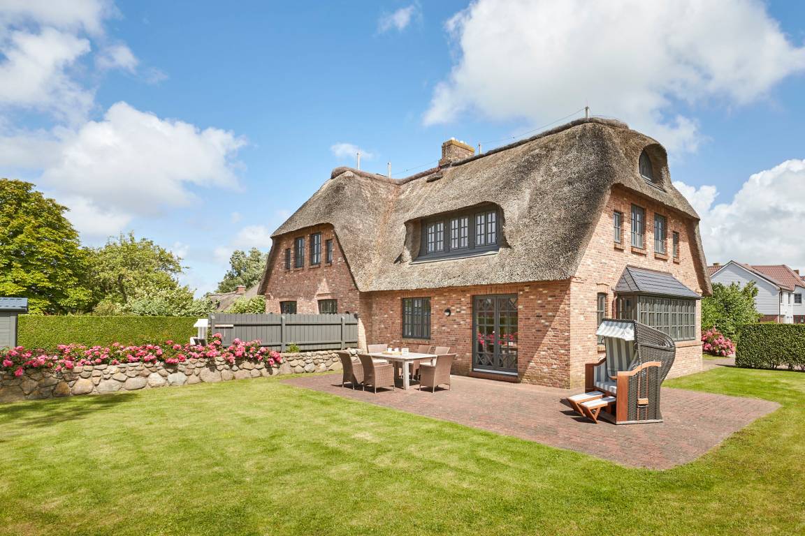 Willkommen in unserem exklusiven Reetdachhaus. Wohnen Sie auf Föhr Land im wunderschönen Dorf Oldsum mit dem Ambiente eines typisch friesischen Inseldorfes. Ein besonderes Wohnerlebnis erwartet Sie. Hier verbringen Sie Ihren Urlaub in einer großzügig und geschmackvoll ausgestatteten Haushälfte. Ob hochwertige Fliesen, Esstisch aus gekälkter Eiche in der Utlucht, eine Vollholzküche, hauseigene Sauna und der Mylin Kachelofen, an dem Sie es sich auf dem Ecksofa in Lederausstattung gemütlich machen - es fehlt einfach an nichts in diesem Urlaubsdomizil. Eine Terrasse (50qm) mit bequemen Möbeln, Sonnenschirm, Strandkorb und ein ca. 350qm großer Garten runden die Sache ab und lassen Sie jede Stunde Ihres Urlaubes genießen. Mehr auf www.voell-auf-foehr.de