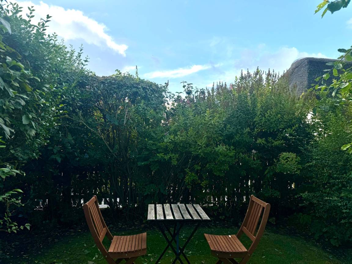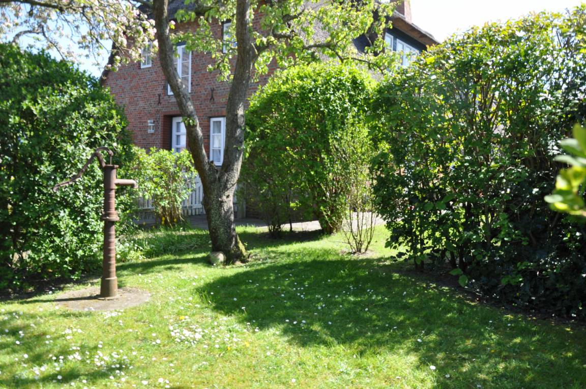 Unser Haus mit seinem schön eingewachsenen Garten liegt zwischen zwei kleinen Stichstraßen. Nebenan ist ein Bauernhof, dahinter liegt direkt die Marsch, welche sich über ca. 1-2 km bis zum Deich hinzieht.