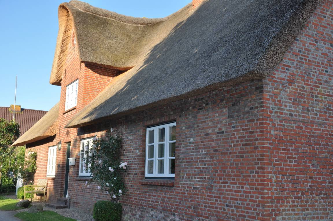 Das reetgedeckte Ferienhaus mit seinen 3 Wohnungen liegt im Ortsteil Toftum des Dorfes Oldsum. Oldsum ist ein schönes, kleines Künstlerdorf an der Marsch. Hier gibt es einen Supermarkt, diverse kleine Restaurants, gemütliche Cafes und verschiedene nette Läden. Toftum ist noch sehr dörflich geprägt und auch in der Hochsaison ist es hier ruhig und entspannt.