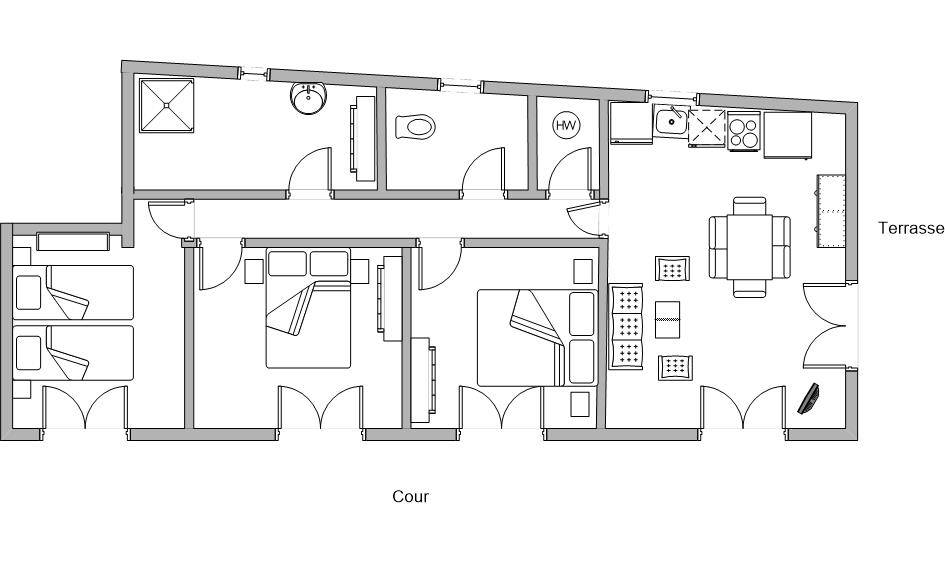 74 m² Gîte ∙ 3 Schlafzimmer ∙ 6 Gäste