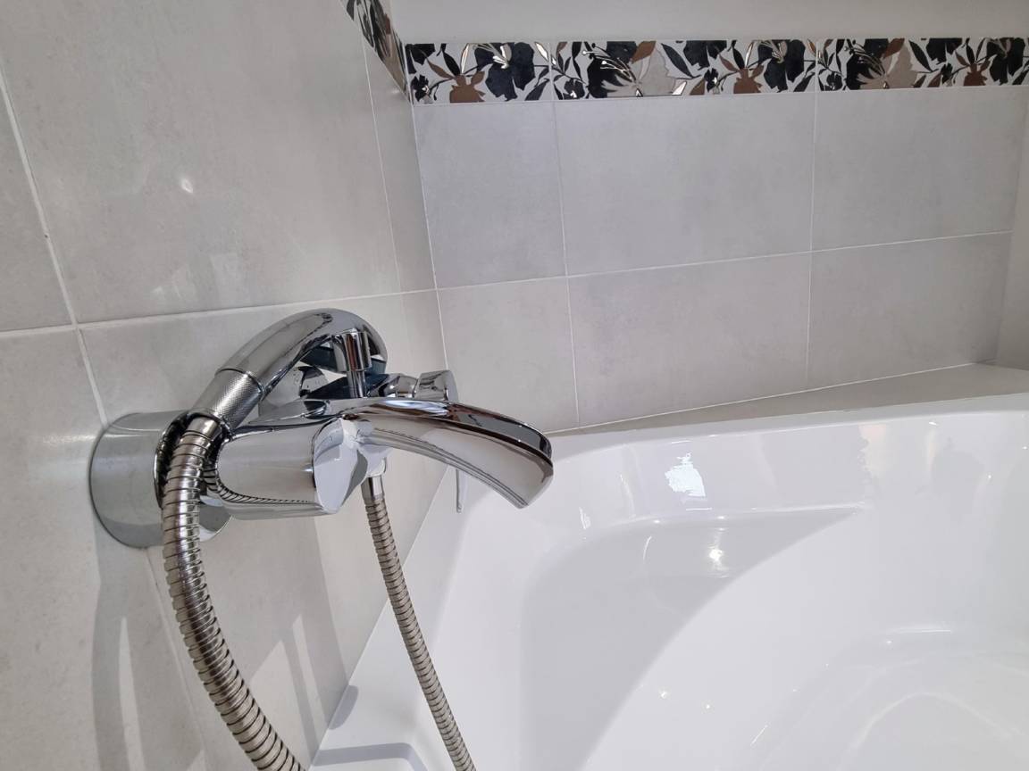 Layout : Parterre: Diele mit Waschmaschine , Wohnzimmer mit TV, Sitzecke , Esszimmer mit Esstisch , Küche mit Wasserkocher, Kochherd, Dunstabzugshaube, Kaffeemaschine(senseo pads), Kaffeemaschine(Filter), Backofen, Mikrowelle, Geschirrspüler, Kühl-/Gefrierkombination , Schlafzimmer mit Doppelbett , Badezimmer mit Dusche, Waschbecken