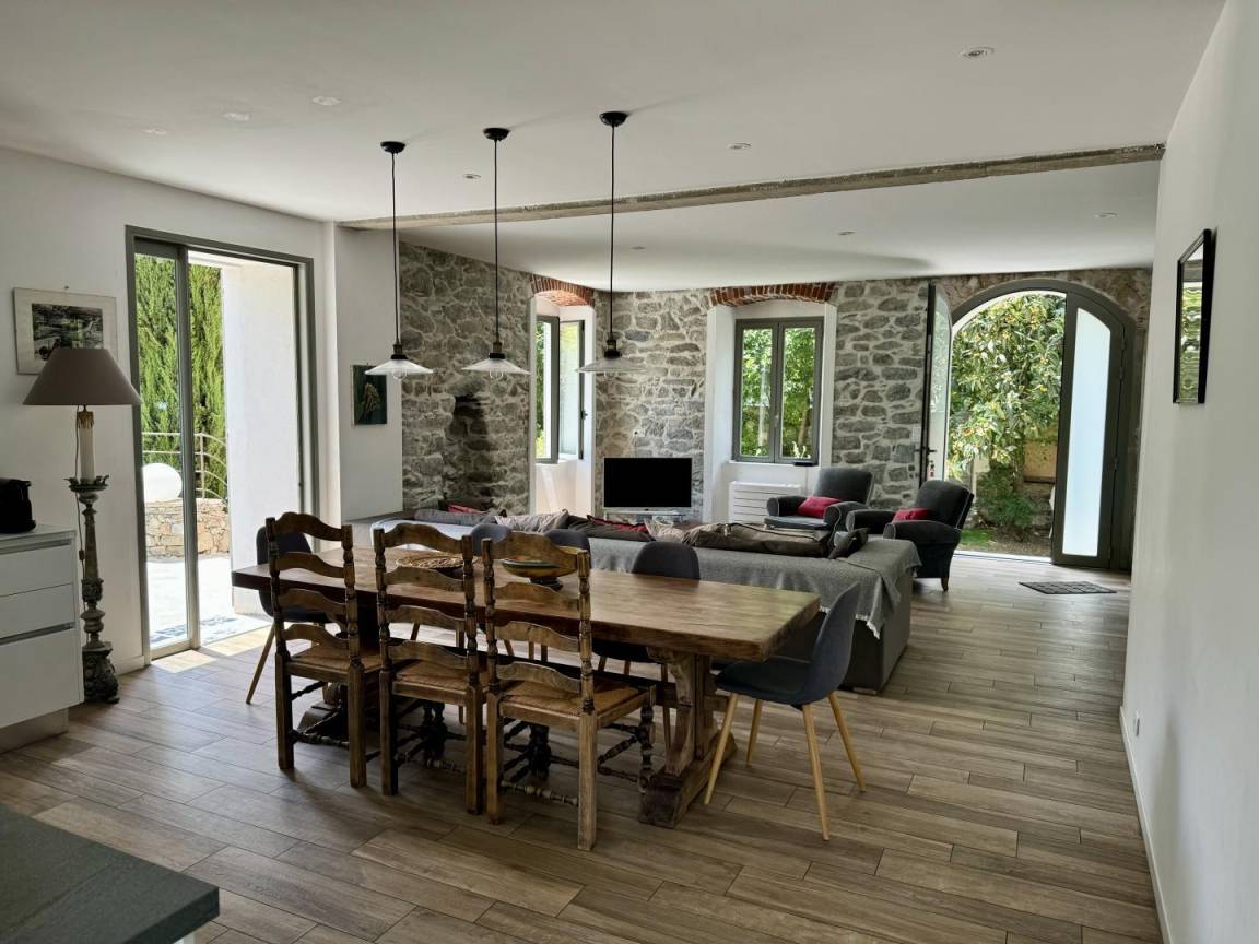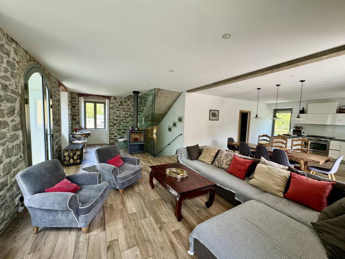 - Großes Wohn-/Esszimmer/Küche mit Holzofen.