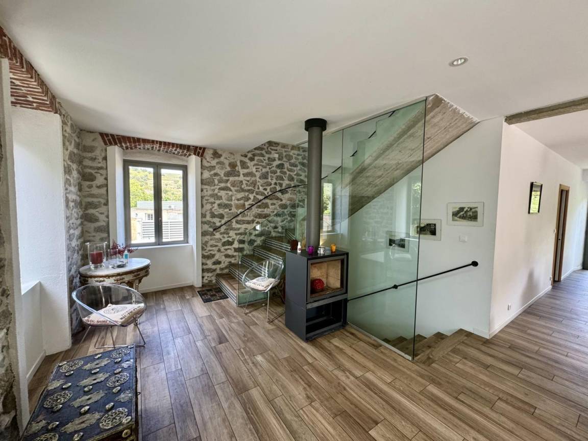 Im Dorf, auf einem Grundstück von 2100 m², unabhängiges Haus mit Charakter von 139,5 m² auf 3 Etagen. Es setzt sich wie folgt zusammen:
