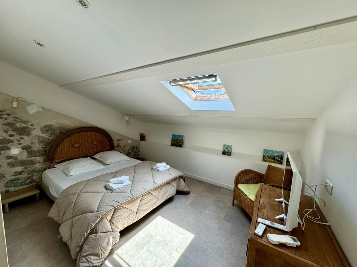 - 1 Zimmer mit einem Bett 160x200 cm mit eigenem Bad/WC.
