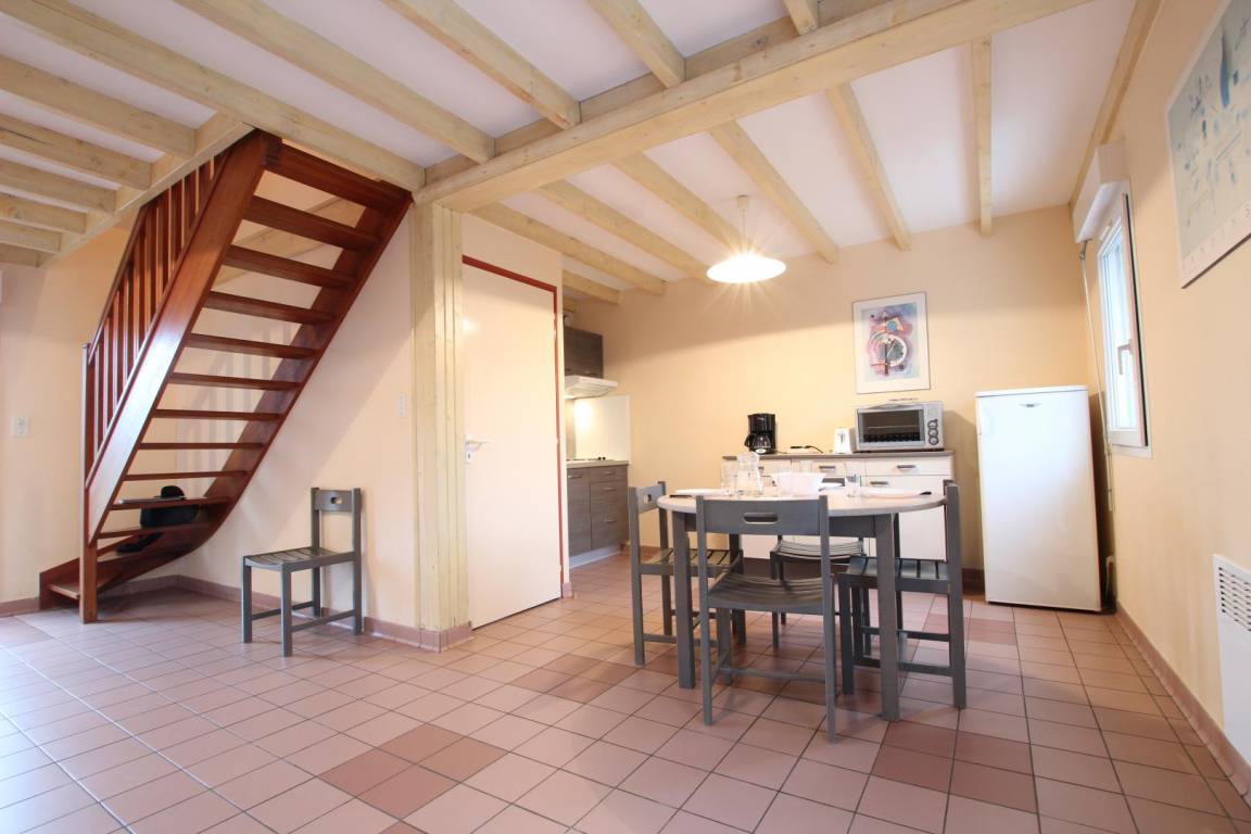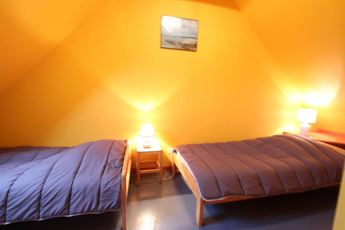 Doppelhaushälfte. Wohnzimmer. Kochnische. 1 Schlafsofa. Duschbad und WC. Fernseher. Obergeschoss: Schlafzimmer 1: 1 Doppelbett (140 cm). Schlafzimmer 2: 2 Einzelbetten (90 cm). Waschküche (1 Waschmaschine und 1 Trockner zur Mitbenutzung). Handtücher können gemietet werden. Bettwäsche und Handtücher werden nicht gestellt. Die Endreinigung ist kostenpflichtig. Die elektrische Heizung ist kostenpflichtig und wird zum aktuellen Tarif abgerechnet. Privatgrundstück ohne Zaun. Terrasse. Gartenmöbel. Grill. Parkplatz. Tischfußball. Tischtennisplatte. Lebensmittelgeschäft 100 m entfernt. WLAN an der Rezeption des Campingplatzes. Bei Ankunft ist eine Reinigungskaution zu hinterlegen.