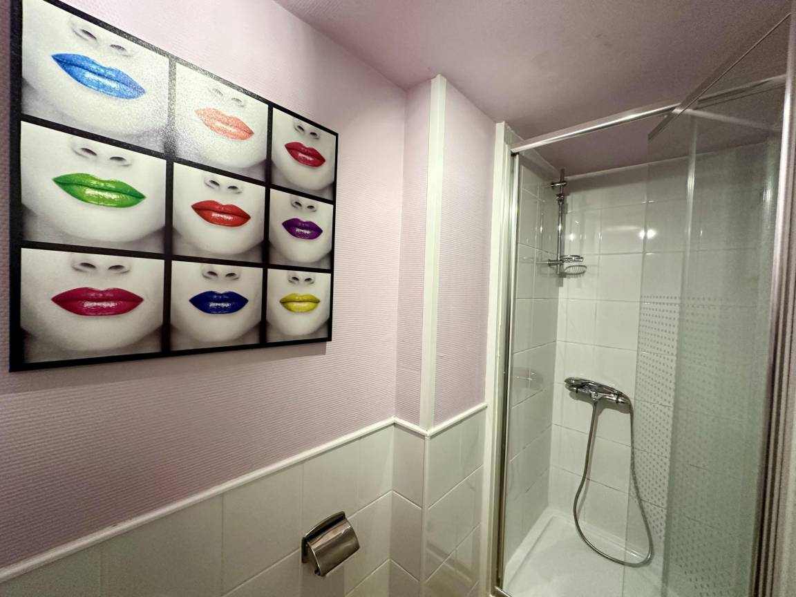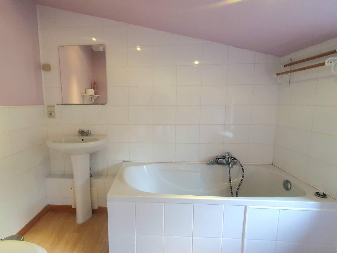 In der 2. Etage: Badezimmer mit Waschbecken, Sitzbadewanne, Dusche, Toilette