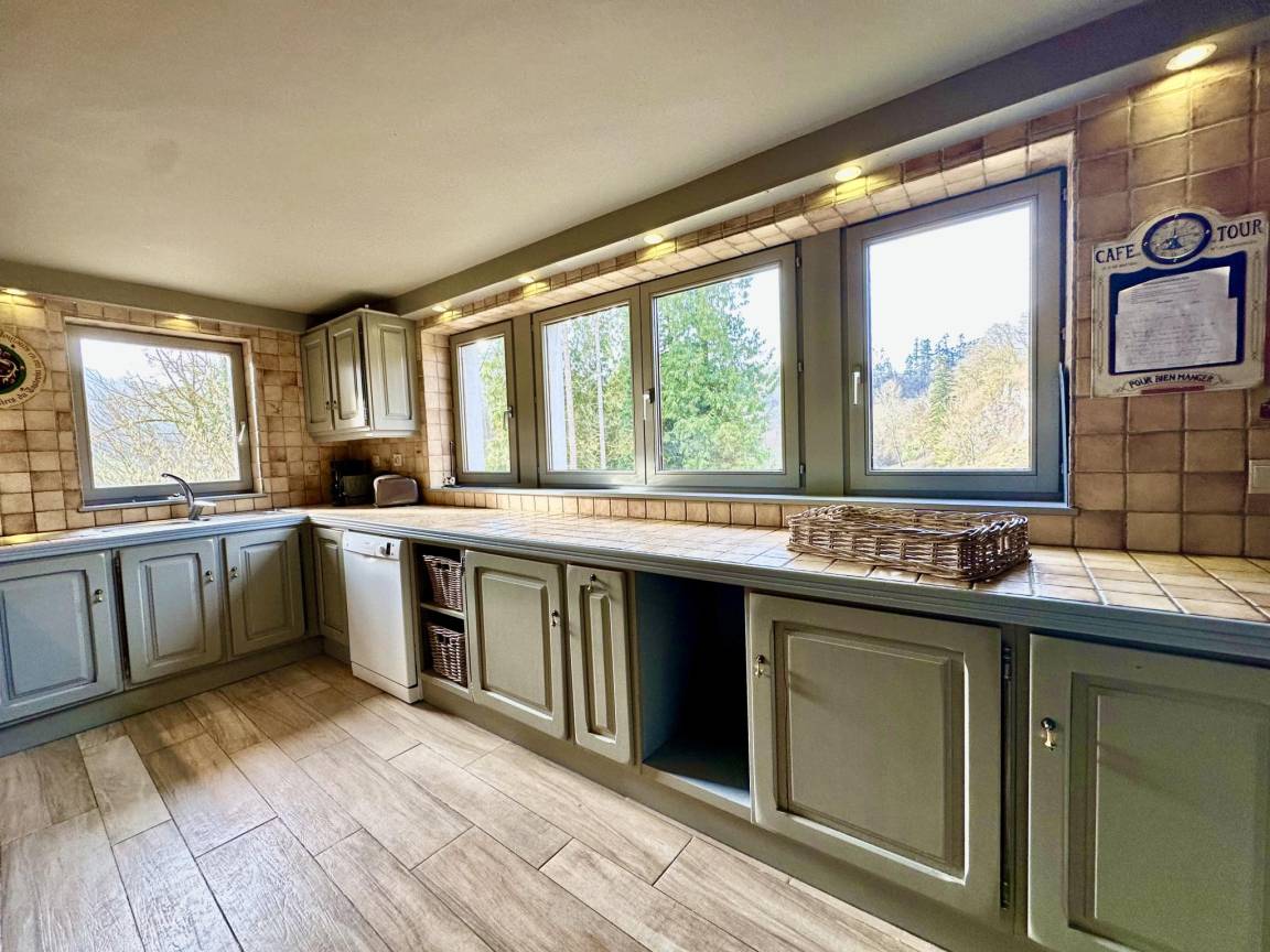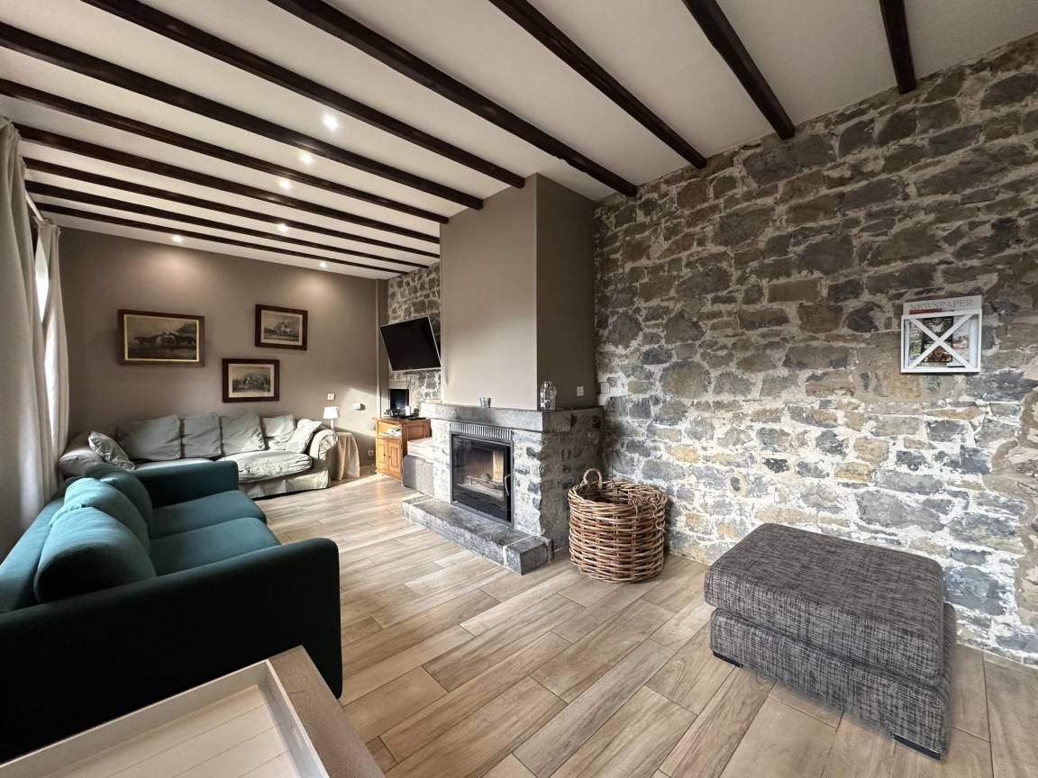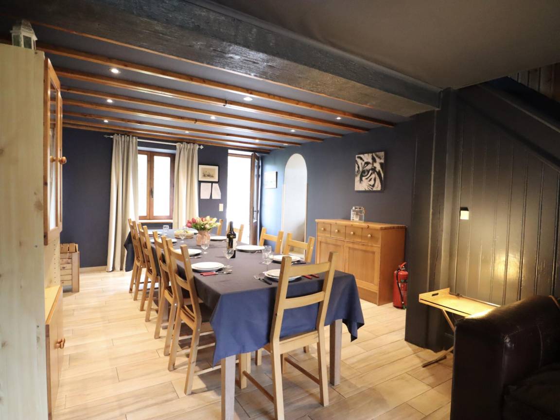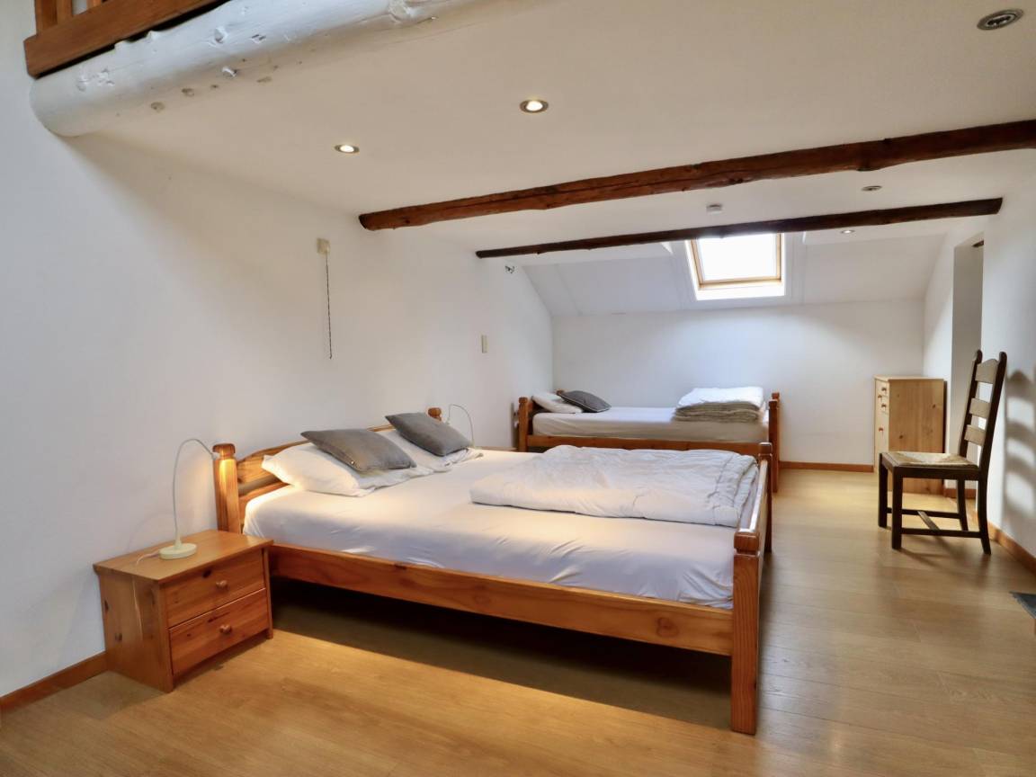 Sie ist sehr komfortabel und verfügt über 2 offene Kamine: einen im gemütlichen Wohnzimmer und einen im Esszimmer. Es gibt 3 Schlafzimmer und 3 Bäder, sowie ein Kinderspielzimmer im Zwischengeschoss. Draußen gibt es eine schöne Terrasse mit Grill