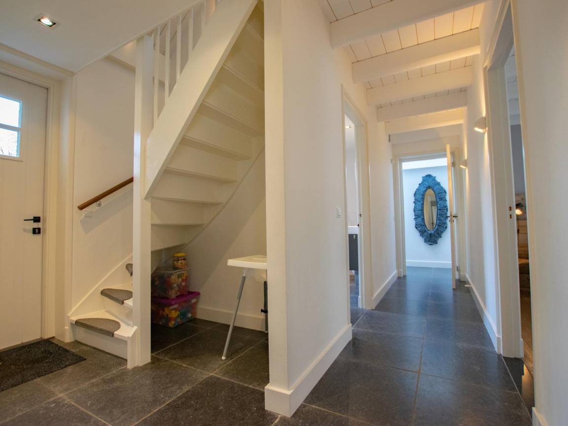 Layout : Parterre: Diele mit Wäschetrockner, Toilette, Waschmaschine , offene Küche mit Wasserkocher, Kochherd(4 Kochplatten, Induktion), Kaffeemaschine(Filter, pads), Kombi-Mikrowelle, Geschirrspüler, Kühlschrank(+ Gefrierfach), Zitruspresse, Stabmixer , Wohn/Esszimmer mit TV(Kabel, Flatscreen, smart TV, Niederländische TV-Kanäle, Deutsch Fernsehsender), Sitzecke, Stereoanlage, 1x Hochstuhl , 2x Schlafzimmer mit Doppelbett, TV , Badezimmer mit Badewanne, Dusche, Waschbecken, Toilette , Gartentüren