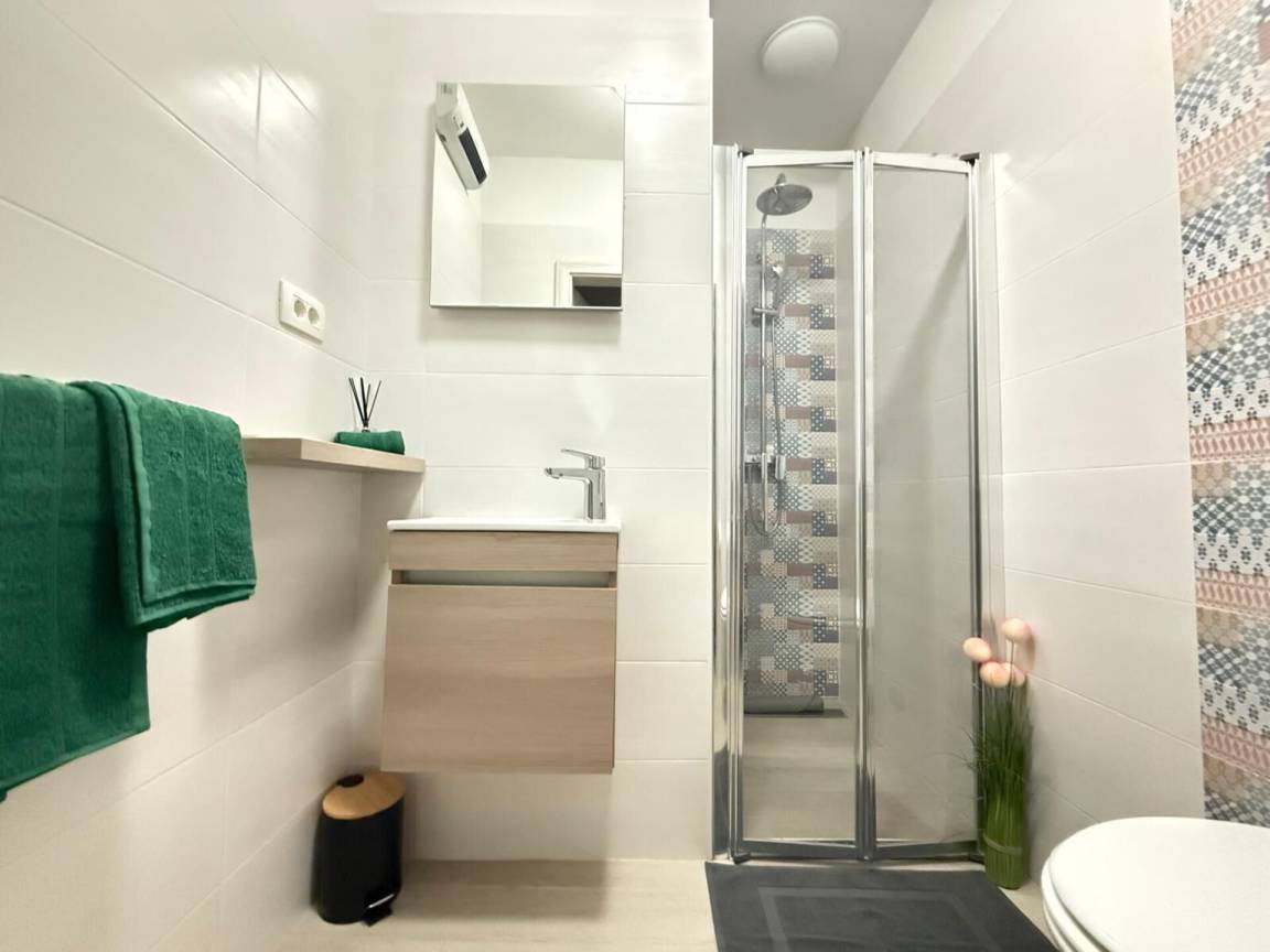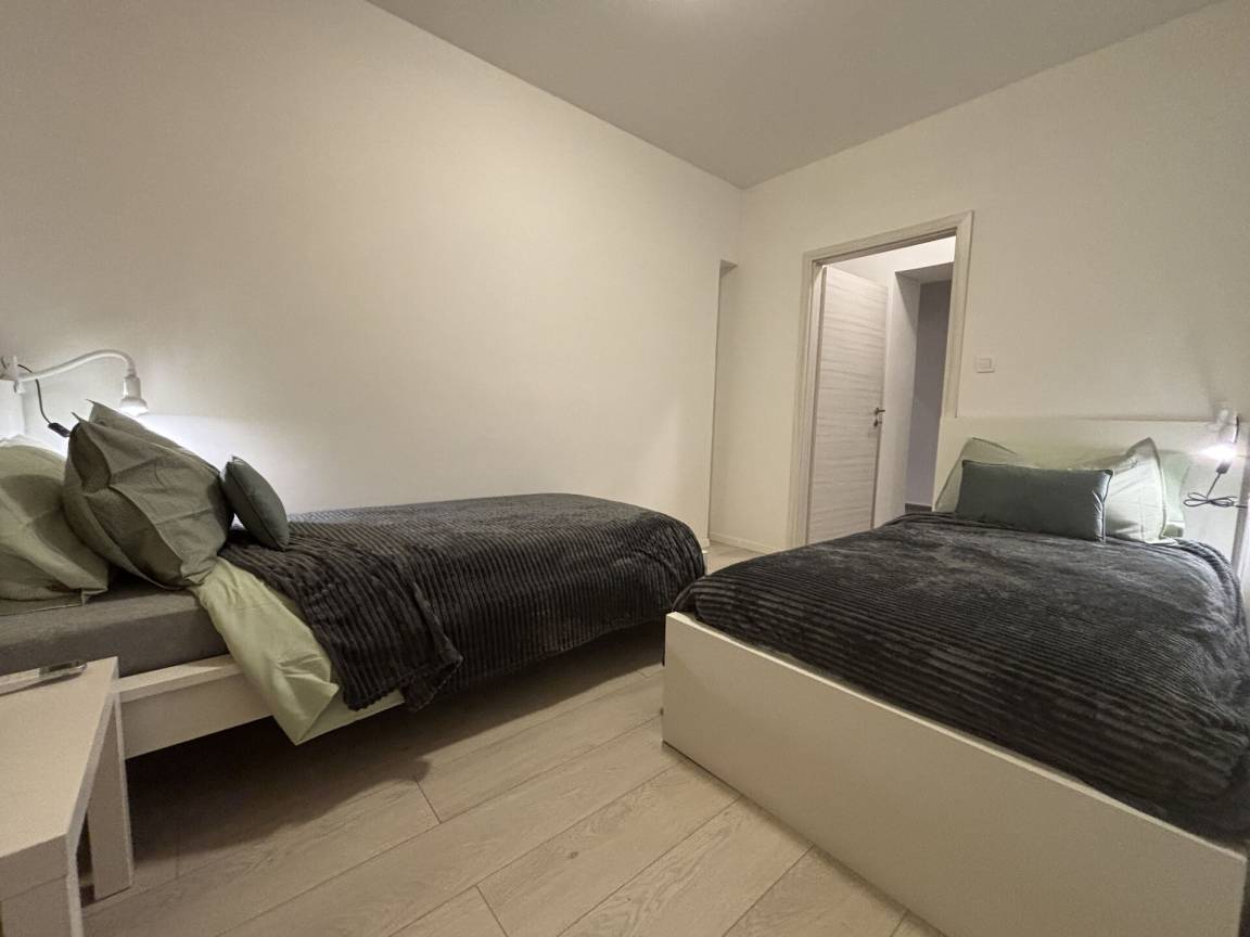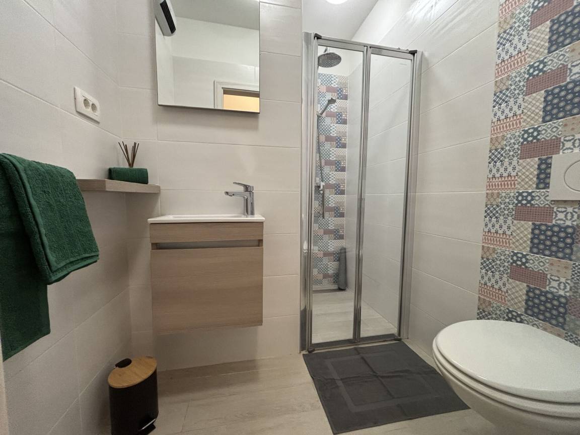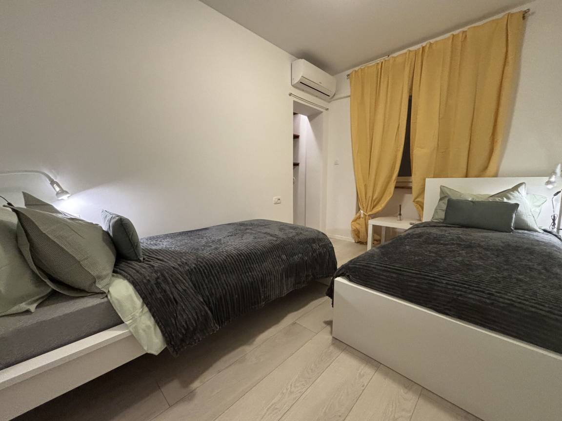 Die Wohnung hat zwei Schlafzimmer, ein Doppel- und ein Zweibettzimmer, klimatisiert, ein Badezimmer mit Dusche und eine zusätzliche Toilette für zusätzlichen Komfort.