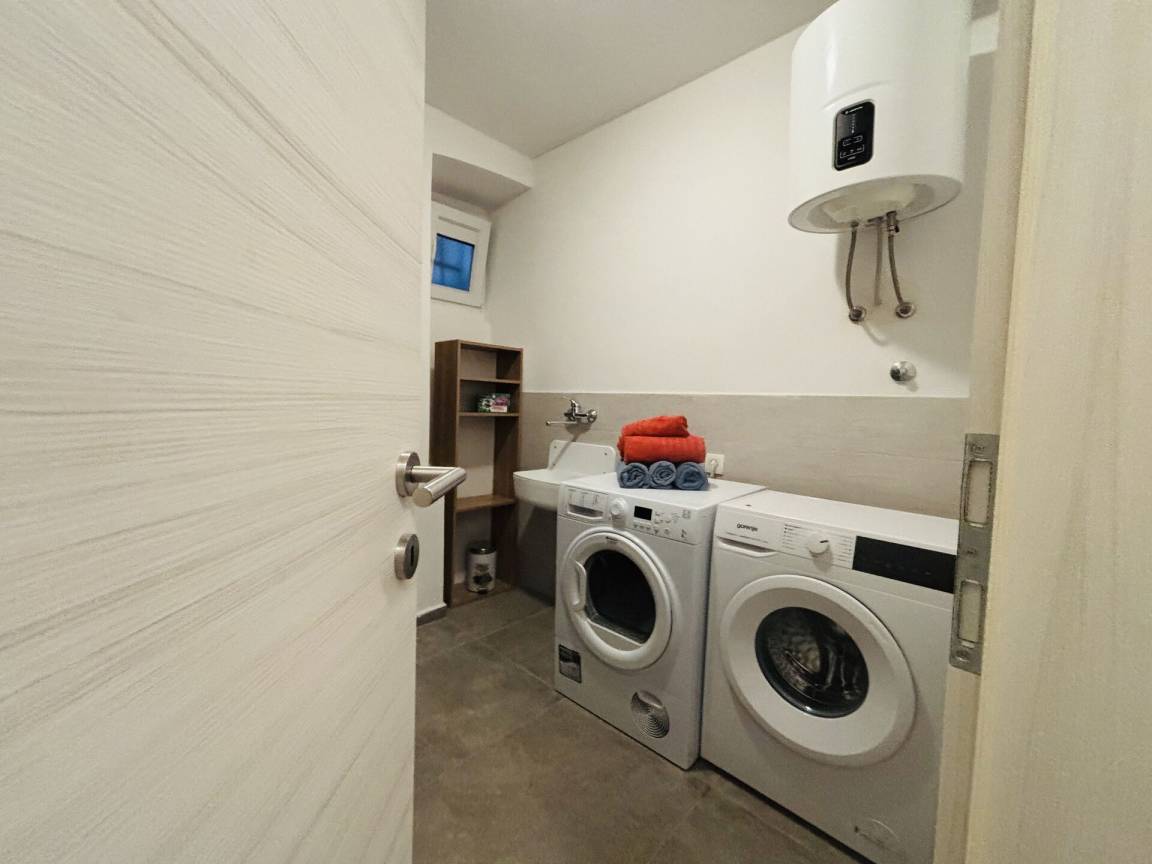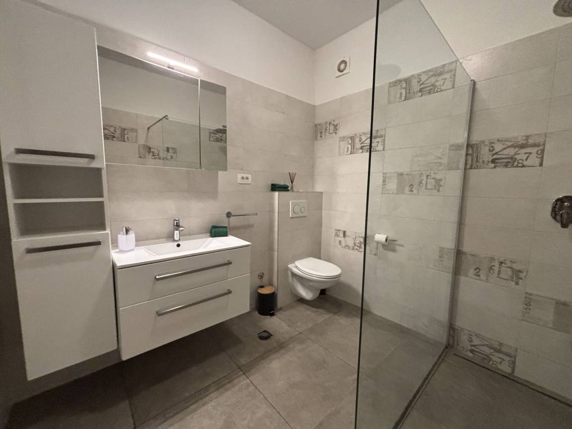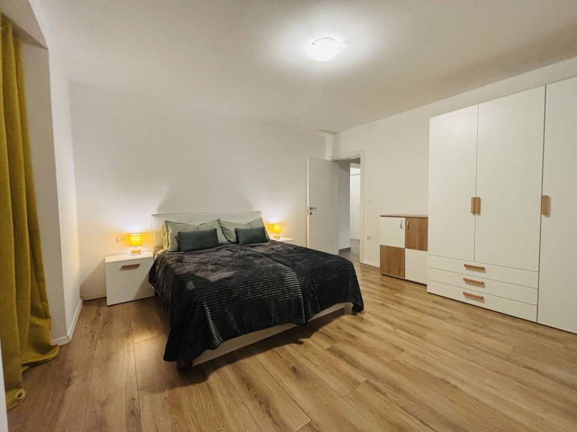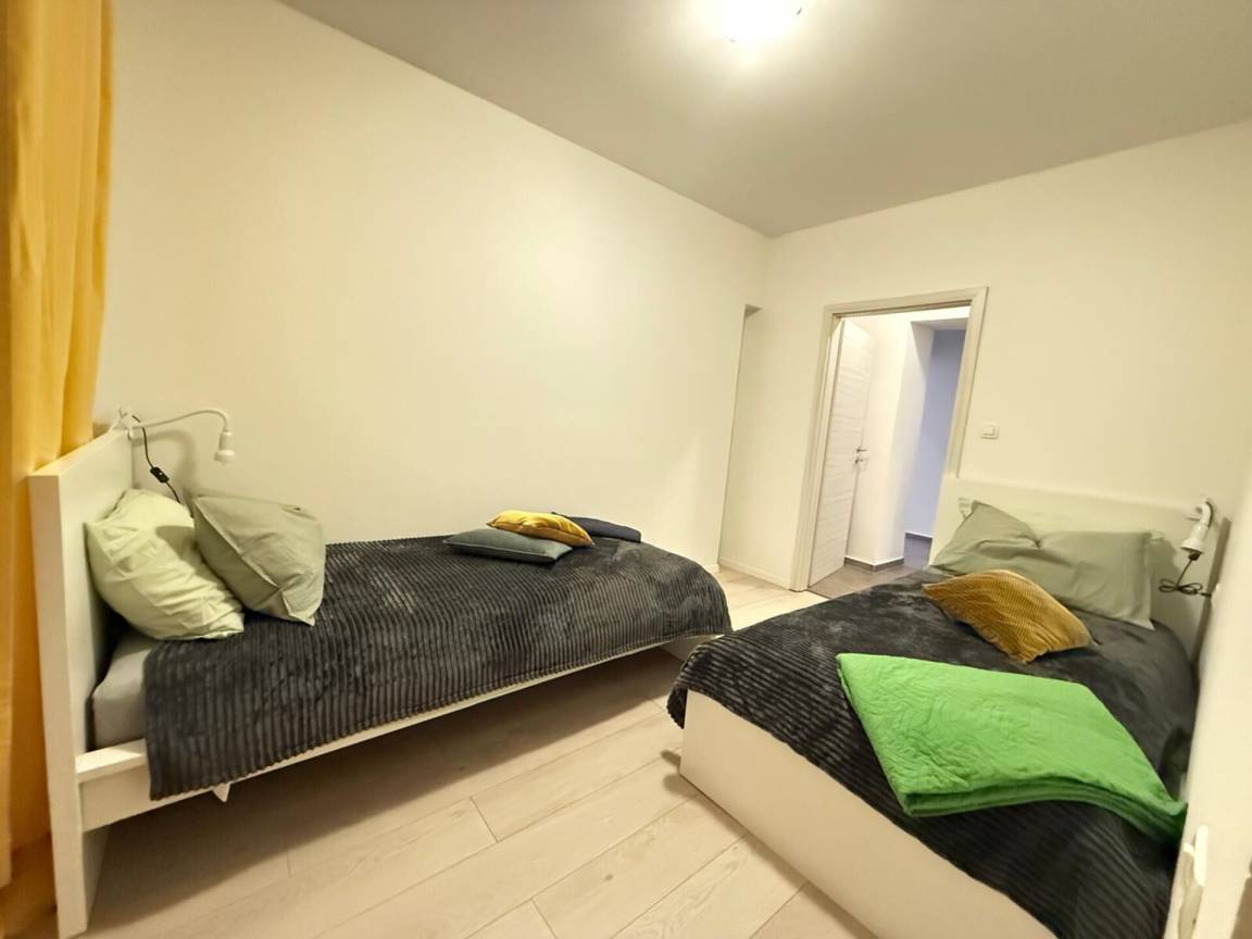 Die Wohnung hat zwei Schlafzimmer, ein Doppel- und ein Zweibettzimmer, klimatisiert, ein Badezimmer mit Dusche und eine zusätzliche Toilette für zusätzlichen Komfort.