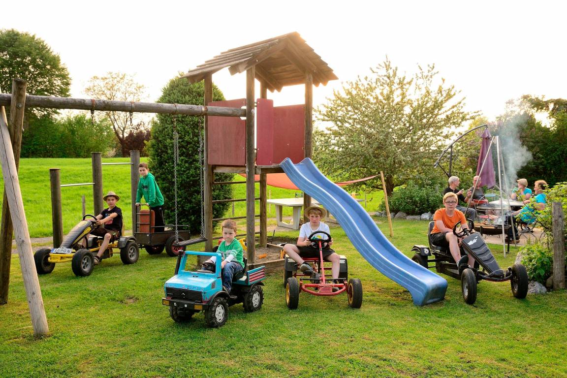 Parkplätze stehen vor dem Hof zur Verfügung. Unsere kleinen Gäste könne sich auf dem großzügigen Spielplatz so richtig austoben. Zur Abenddämmerung hin, steht für die Kleinen eine Spielscheune parat in der auch viele Spielmöglichkeiten vorhanden sind. Ein großer Fuhrpark für Kinder jeden Alters, sowie Trampolin und Tischtennis runden unser Angebot ab.
