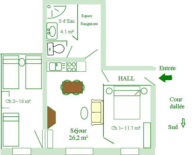 63 m² Gîte ∙ 2 Schlafzimmer ∙ 5 Gäste