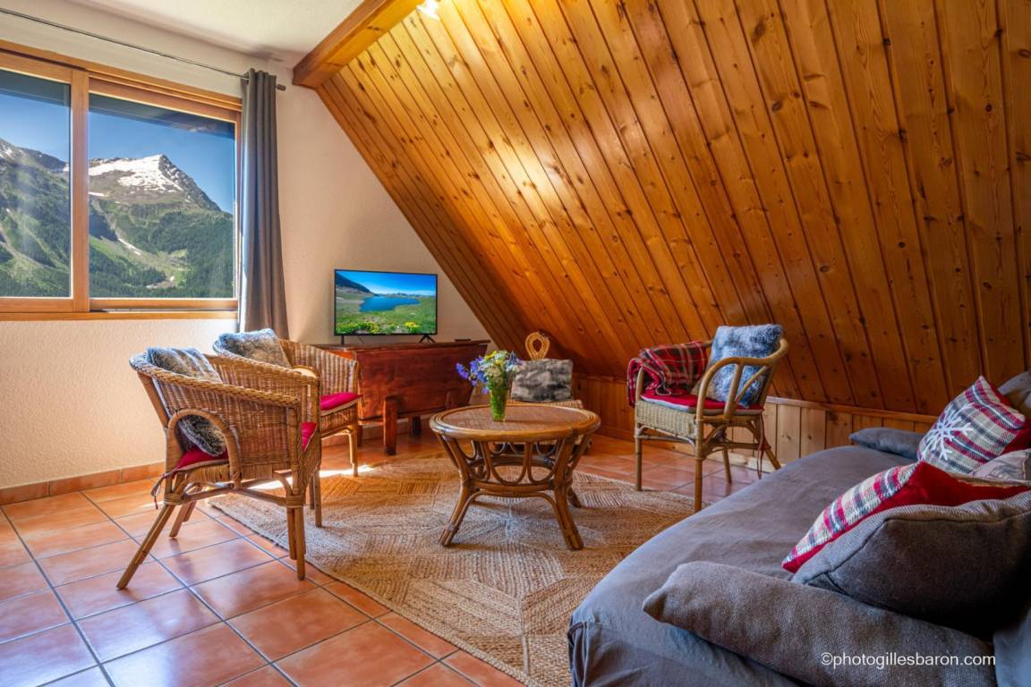„Nous avons loué les 2 logements de ce chalet pour pouvoir accueillir notre famille: Les 2 bénéficient d'une magnifique vue dégagée sur les montagnes, on ne s’en lasse pas. Les volumes sont beaux et spacieux, ce qui rend le lieu très confortable pour se retrouver en famille. il est au calme, à 10 mn à pied de la station. Les prestations sont de qualité, la cheminée apporte une ambiance chaleureuse et cocooning, parfaite après une journée au grand air. L’équipement électroménager est complet, rien ne manque pour se sentir comme à la maison. Je recommande vivement ce chalet pour un séjour reposant à la montagne. et il faut également que le Le logement était très propre et parfaitement entretenu“