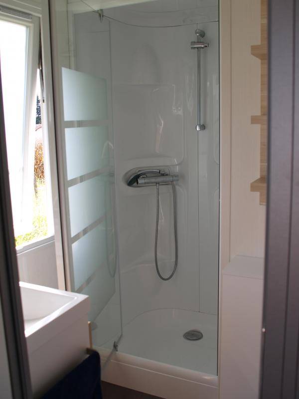 In einem Park mit 20 Chalets und Mobilheimen bietet dieses Mobilheim ein Wohnzimmer mit ausgestatteter Küche, 2 Schlafzimmer (1 140-cm-Bett und 2 80-cm-Betten), Badezimmer und WC. Private Terrasse mit Gartenmöbeln. Schwimmbad, Tennis, Wandern... ohne Mäßigung zu konsumieren! Gemeinsamer Waschraum mit Waschmaschine. Spülwannen. W-lan.