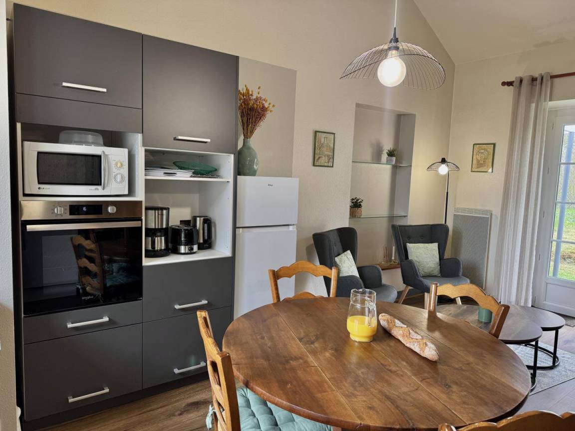 „Ce petit gîte, très bien situé, est très mignon intérieurement et extérieurement. Très propre ! J'ai été heureusement surprise par la super qualité des couverts. Torchon et essuie-mains fournis. Nous avons loué les draps, les lits étaient faits. Il y a tous les équipements indispensables: Cafetière, bouilloire, grille pain. En résumé une très bonne expérience, nous reviendrons certainement.“