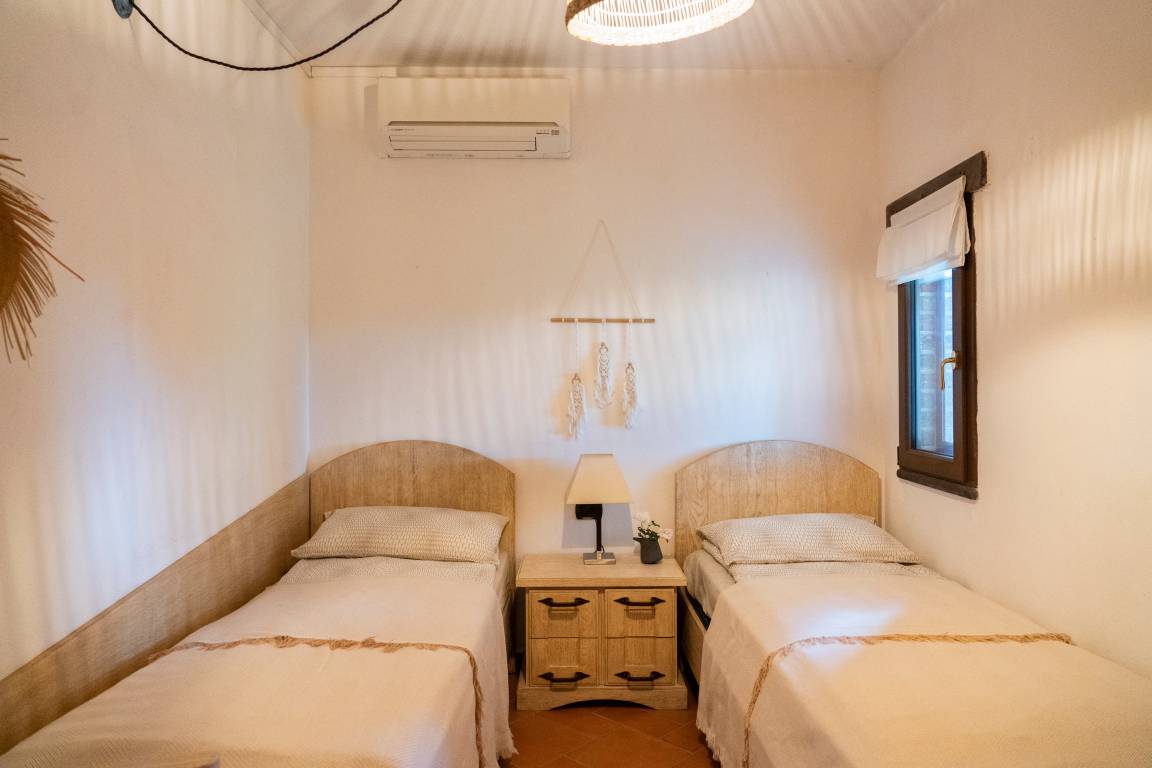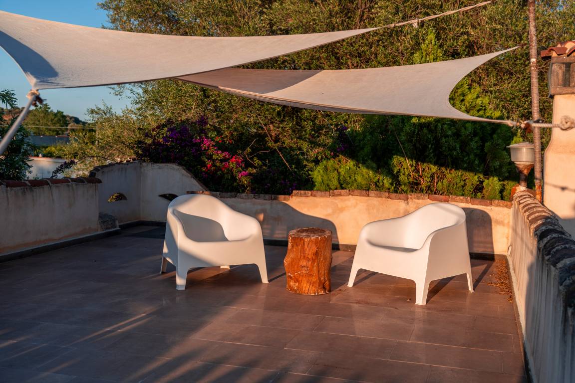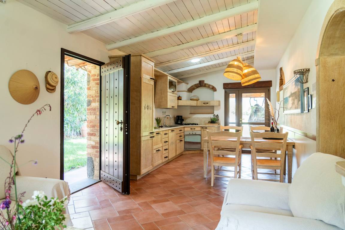 Das Haus ist ideal für Familien, Paare und Gäste, die gerne zu Fuß unterwegs sind. Im Inneren erwartet Euch ein komfortables Ferienhaus mit einer entspannten Atmosphäre und harmonischen Farben. Das Panoramafenster im Wohnbereich bietet einen schönen Blick auf den Garten. Alle Möbel und die Einbauküche wurden von sardischen Handwerkern individuell gefertigt. In beiden Schlafzimmern gibt es einen Kleiderschrank und bequeme Betten. Bei der Ausstattung der CASA NURRU wurde Wert auf hohe Qualität gelegt. Von der kleinen Dachterrasse aus könnt ihr den Ausblick auf den Hausberg Monte Tuttavista genießen.