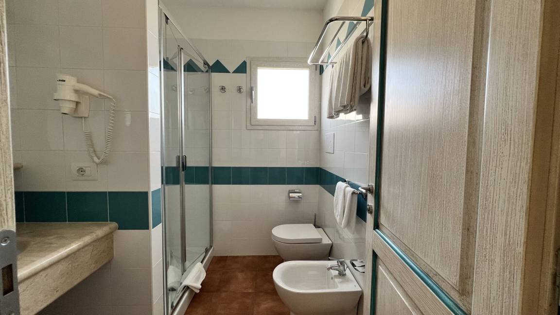 Badezimmer: Waschbecken, WC, Bidet, Dusche, Fön, WiFi Internet.