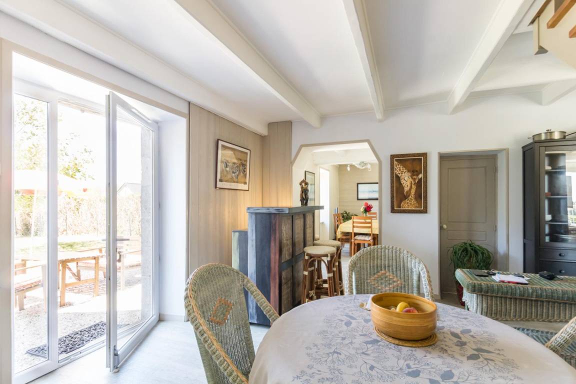 Einfamilienhaus. Eingang. Küche (Backofen, Induktionskochfeld, Geschirrspüler, Mikrowelle, Kühlschrank mit Gefrierfach, Küchenmaschine, Steingrill mit Raclette-Set). Wohnzimmer mit Bar. Esszimmer. Aufenthaltsraum mit Holzofen (TV, Glasfaser-Internet, Schreibtisch). Toilette. Badezimmer. Heizungsraum (Waschmaschine, Trockner). Im Obergeschoss, Schlafzimmer 1 (1 Bett 140X190), Schlafzimmer 2 (1 Bett 140X190), Toilette, Schlafzimmer 3 (1 Bett 160X200) mit Ankleidezimmer und zum Schlafzimmer offenem Badezimmer (Dusche + Waschbecken) und Schreibtisch. Komplette Babyausstattung (Bett + Stuhl + Wickeltisch). Bettwäsche und Handtücher werden gestellt. Betten bei Ankunft gemacht. Reinigungsservice gegen Aufpreis. Ölzentralheizung. Alle Gebühren inbegriffen. Keine Aufladung für Elektrofahrzeuge. Privater umzäunter Innenhof. Privater umzäunter Garten. Gartenmöbel. Grill. Markise. Schaukel. Unterstand. Öffentliche Parkplätze in unmittelbarer Nähe.