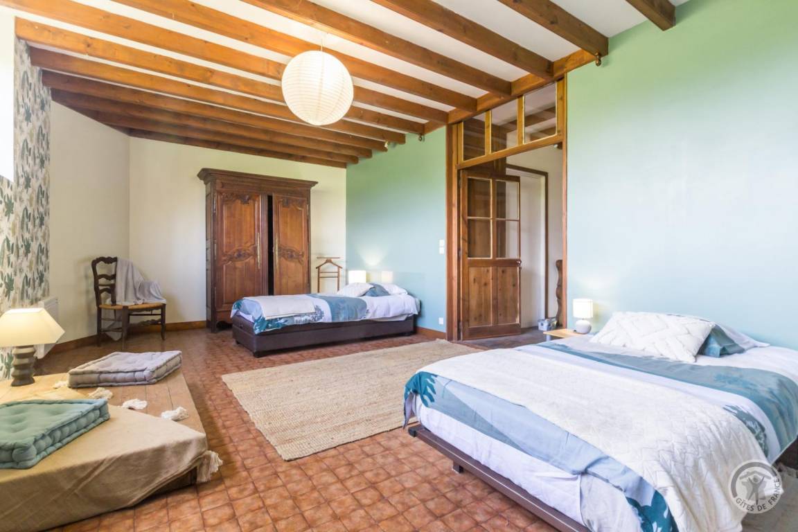 „Nous avons passé un séjour parfait dans le gîte d'Alice et Christian. La maison, située dans un domaine chargé d'histoire et de belles pierres, est spacieuse, décorée avec goût, impeccablement propre, parfaitement équipée (avec une cuisine qui ravira les apprentis cuistots). La chambre des enfants est superbe et nos fils ont pu profiter des jouets mis à disposition. Mais c'est surtout l'accueil des propriétaires qui nous a laissé une envie de revenir ! Entre les petites attentions (les oeufs de leurs poules, le pot de confiture, les brochures et catalogues sur la région...) et leur gentillesse sincère, nous avons réellement été accueillis comme des membres de la famille. Merci encore pour ce séjour inoubliable“