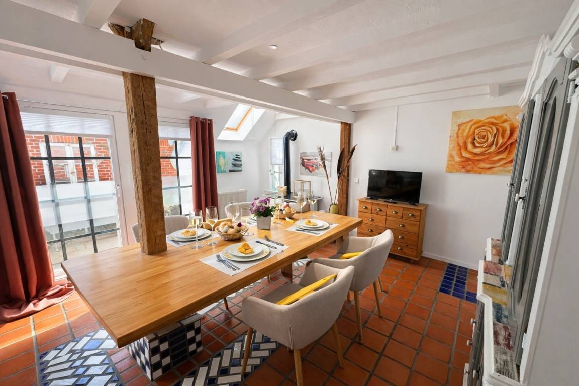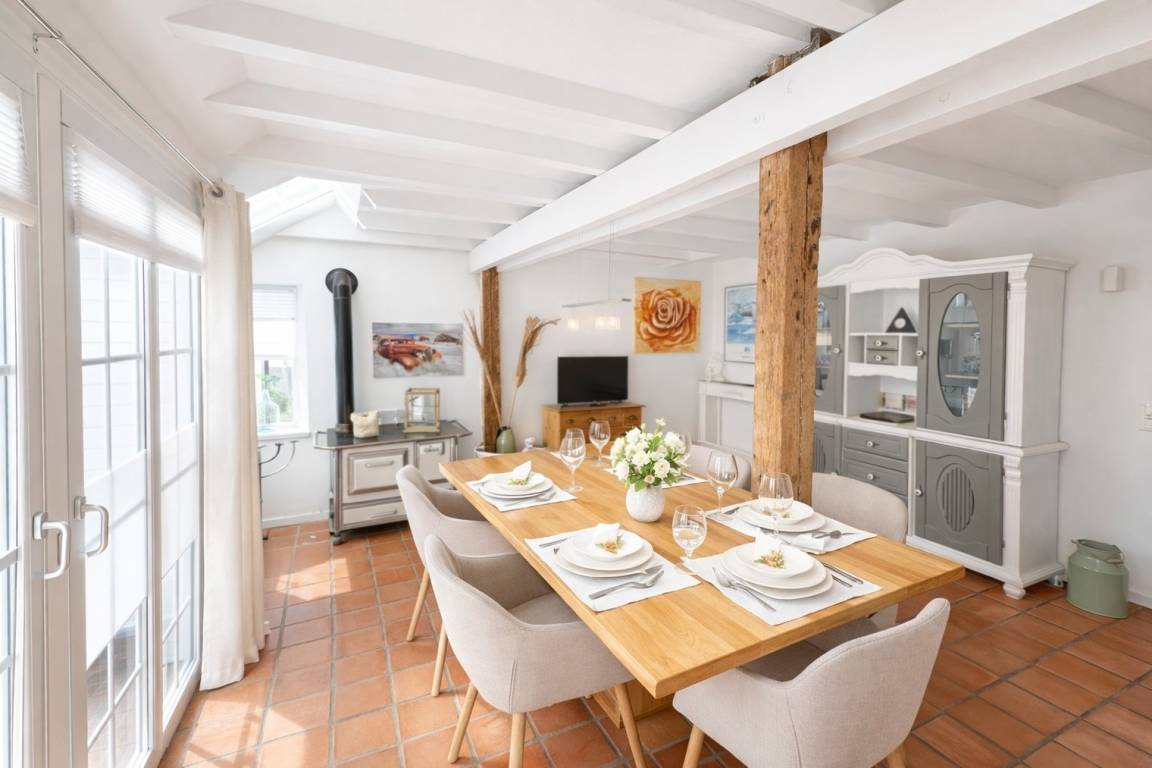 Die Ferienwohnung besticht durch ihre Großzügigkeit, Helligkeit und sonnige Atmosphäre. Hochwertige Materialien und liebevolle Details schaffen ein stilvolles und zugleich gemütliches Ambiente. Besonders hervorzuheben sind die handgefertigten marokkanischen Tonfliesen, die dem Interieur einen einzigartigen Charakter verleihen.