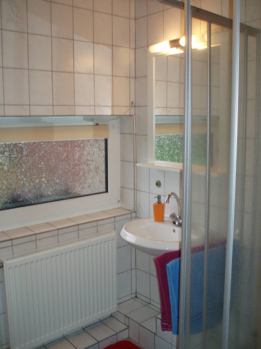 Bad: Duschkabine, Waschtisch, WC, Spiegel