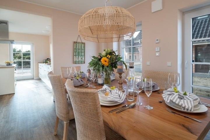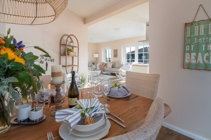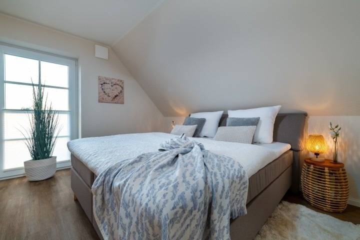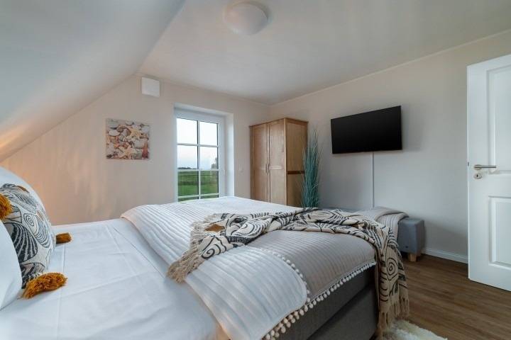 Das luxuriöse Ferienhaus "Sansibar", welches im Sommer 2021 fertiggestellt wurde, bietet auf zwei Etagen mit ausgefallenem Stil sowie besonderen Details Nordseeaufenthalt der Extraklasse. Im Erdgeschoss befindet sich das großzügig gestaltete und liebevoll eingerichtete Wohnzimmer mit Flatscreen-TV. Der angrenzende Essbereich und die offene, moderne Küche bieten alle Annehmlichkeiten, um einen tollen Kochabend zu veranstalten. Im Erdgeschoss befindet sich zudem ein Schlafzimmer mit Doppelbett, ein Badezimmer mit ebenerdiger Dusche und eine finnische Sauna. Hier können Sie sich nach langen Spaziergängen entspannen und wieder aufwärmen. Im Obergeschoss des Hauses befinden sich drei weitere Schlafzimmer mit Doppelbetten sowie zwei Badezimmer. Eines ist mit ebenerdiger Dusche und das andere mit Whirlwanne und ebenerdiger Dusche ausgestattet. Im Flur des Obergeschosses befindet der Zugang zum Spitzboden. Gerne dürfen vierbeinige Familienmitglieder auf Anfrage gegen Aufpreis mitreisen. Zum Haus gehören zudem eine möblierte Terrasse mit Sonnenschirm und eine nicht eingezäunte Gartenfläche. Auch einem gemütlichem Grillabend steht dank des Elektrogrills nichts im Weg. Vor dem Haus gibt es außerdem eine großzügig angelegte Parkplatzfläche.
