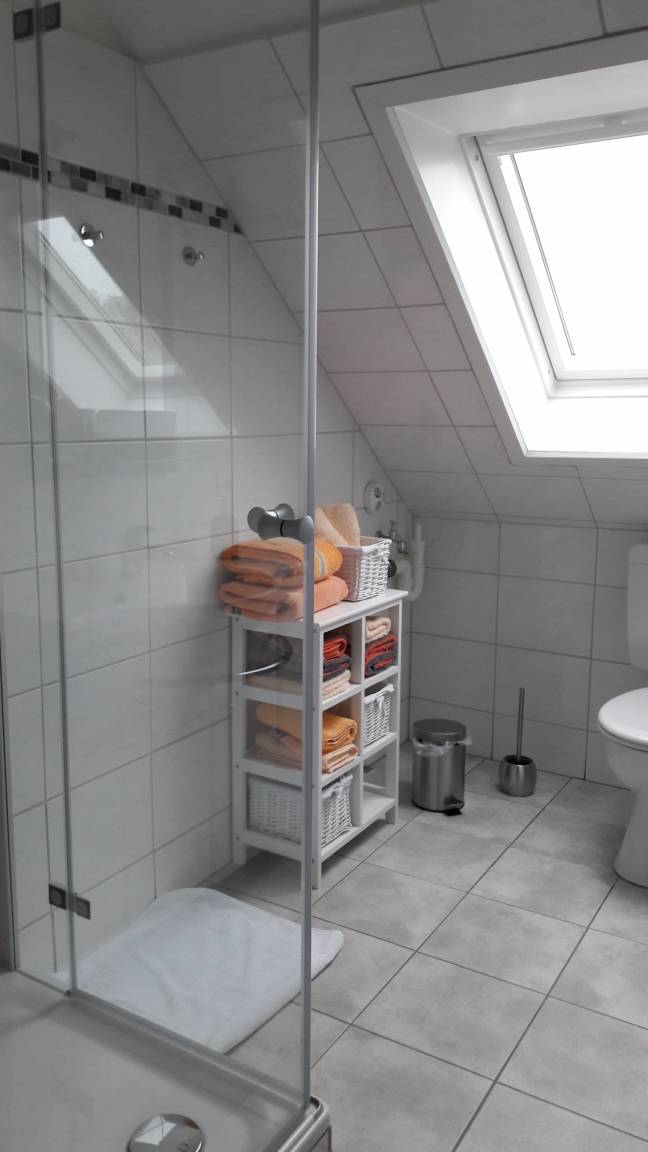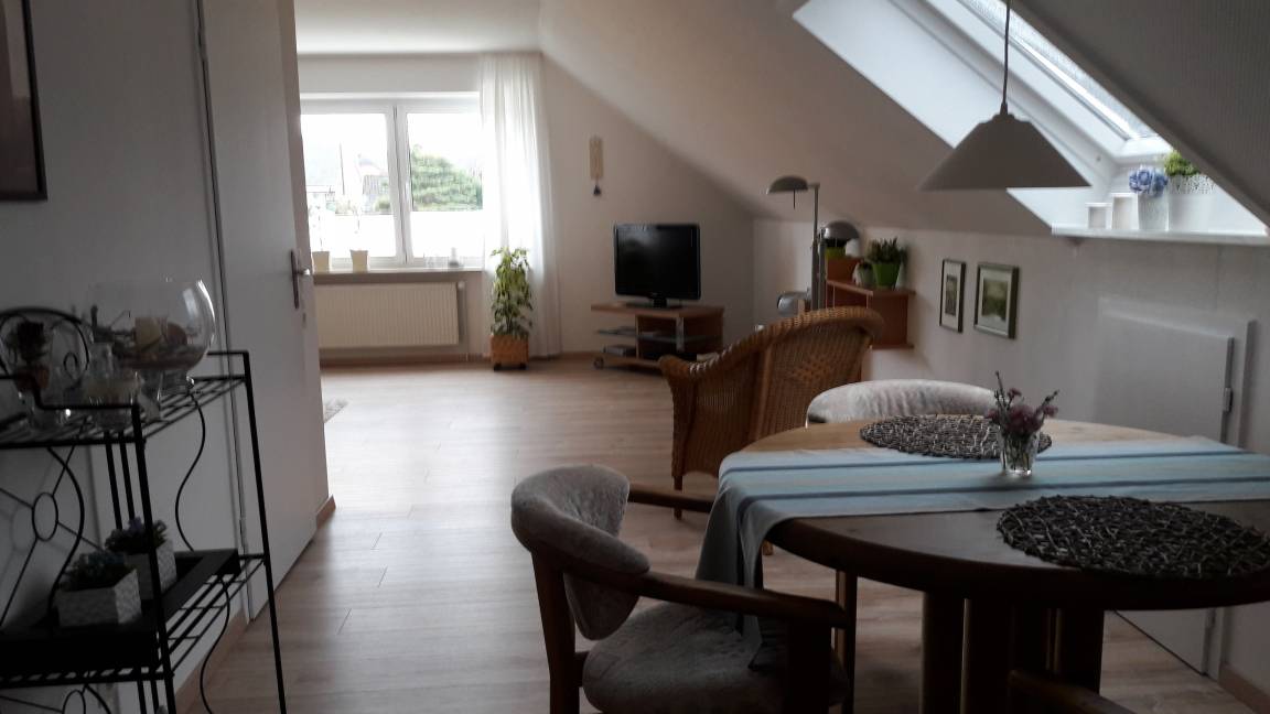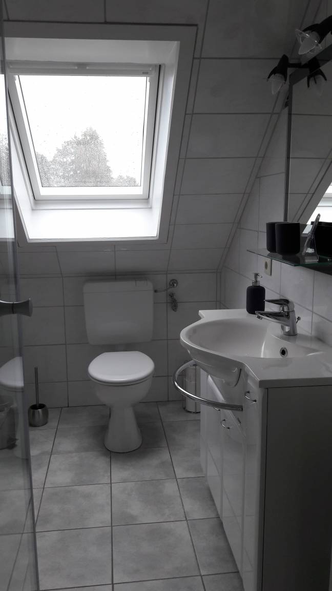 „Ein freundliche, sehr geräumige, helle und gut ausgestattete Wohnung im OG eines 2-Fam. -Hauses mit einer sehr guten Schalldämmung nach unten (bis auf Küche und Badezimmer durchgängig schönes Laminat auf Stahlbetonboden). Im Parterre wohnen die sympathischen, den Wünschen der Gäste gegenüber sehr aufgeschlossenen Gastgeber. Ein PKW-Parkplatz befindet sich auf dem Grundstück. In ca. 200 m Luftlinie vom Haus entfernt verlaufen die Gleise der Rendsburger Hochbahn. Die Züge sind zu hören. Aber der Geräuschpegel hält sich sehr in Grenzen. Uns hat das überhaupt nicht gestört, waren im Gegenteil froh über die Nähe der Schwebebahn, die es ermöglicht, schnell über den NO-Kanal zu kommen. Wer eine schöne Ferienwohnung in Mittelholstein sucht, von der aus man schnell sowohl an der Ostsee (Kiel, Eckernförde) als auch an der Nordsee (z. B. Husum) ist, dem ist diese Wohnung sehr zu empfehlen.“