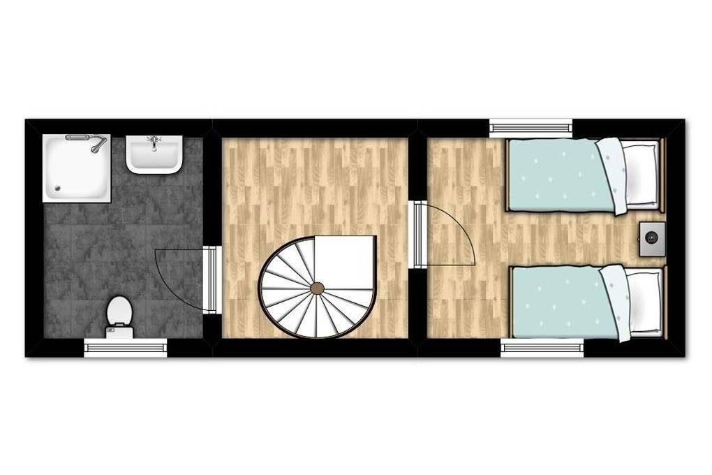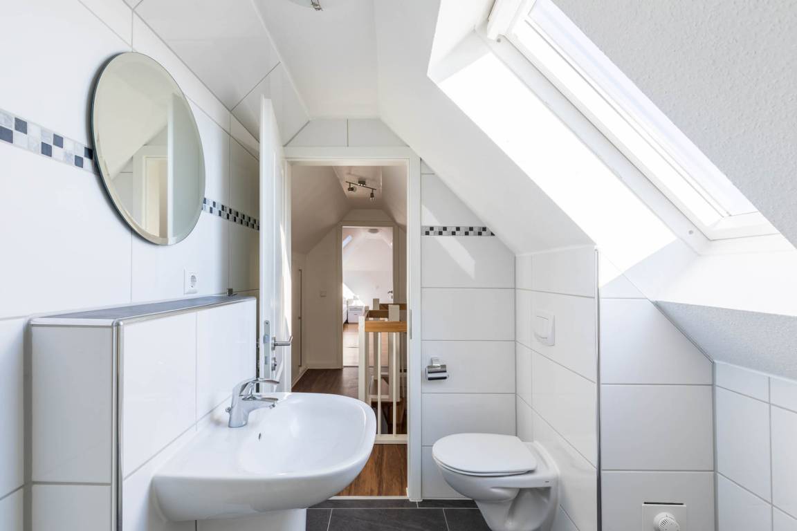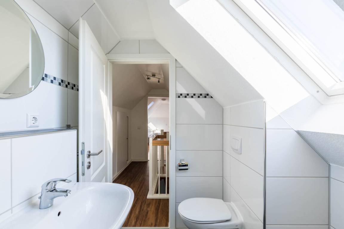 In der oberen Wohnebene, im DG befinden sich ein Gäste-/ Kinderzimmer mit zwei Einzelbetten und ein weiteres Duschbad.