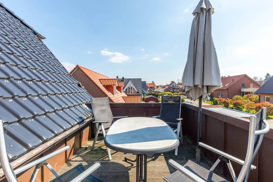 Genießen Sie auf dem angrenzenden, möblierten Südwest-Balkon, Richtung Rosenweg, die schöne Ostseeluft.