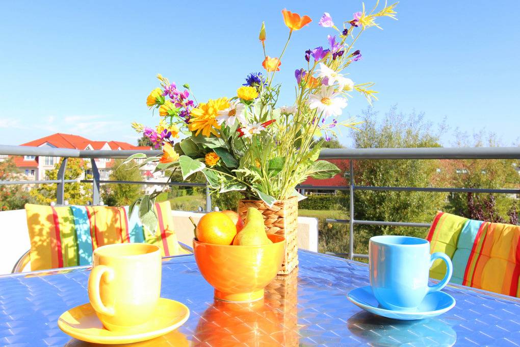 Der möblierte Nordost-Eckbalkon lädt zum Verweilen an der herrlichen Luft der Ostsee ein.