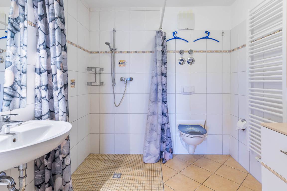 Das moderne Bad mit Dusche und WC ist barrierefrei.