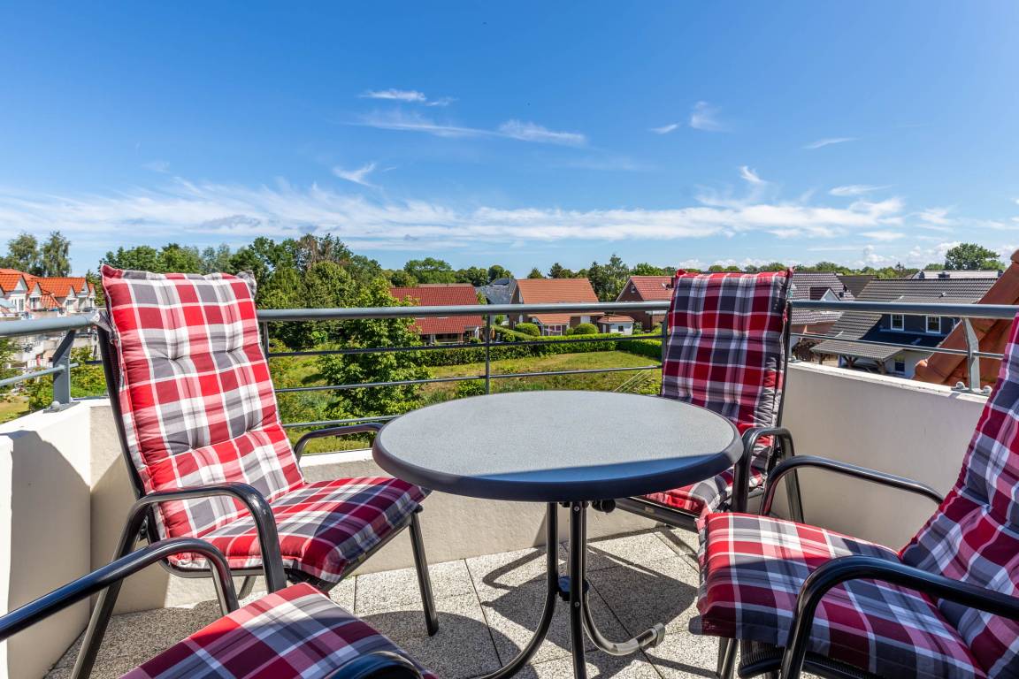 Platz für fünf Gäste, Fahrstuhl, Balkon, WLAN – dieses komfortabel ausgestattete Feriendomizil ist prädestiniert für einen erholsamen Ostseeurlaub mit Kindern.