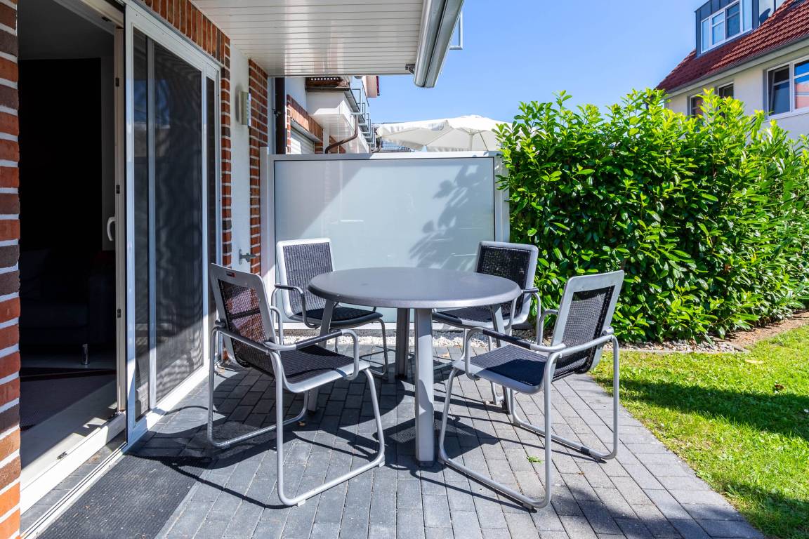 Die möblierte Ost-Terrasse mit Markise, welche Sie vom Wohnzimmer aus begehen, lädt nach einem erlebnisreichen Tag zum Entspannen ein.