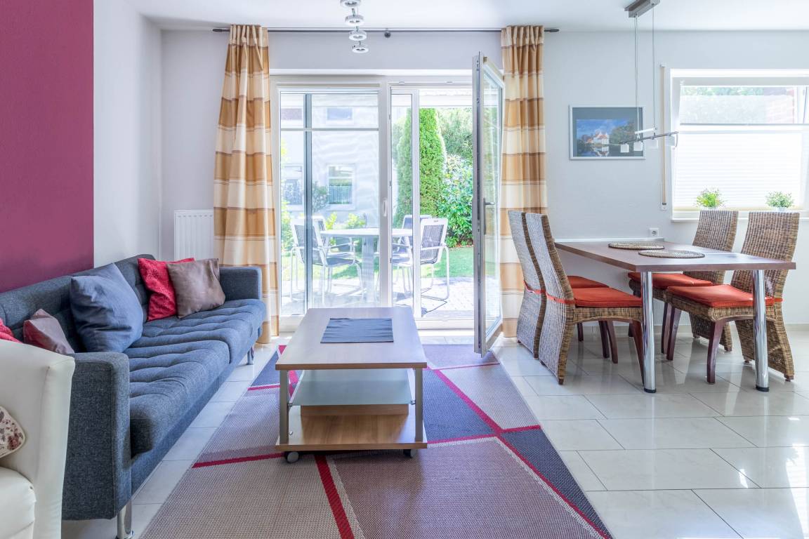 Die 3-Zimmer-Ferienwohnung im Erdgeschoss punktet auf etwa 60qm Wohnfläche mit ihrer modernen Ausstattung für bis zu 4 Gäste + Kleinkind.