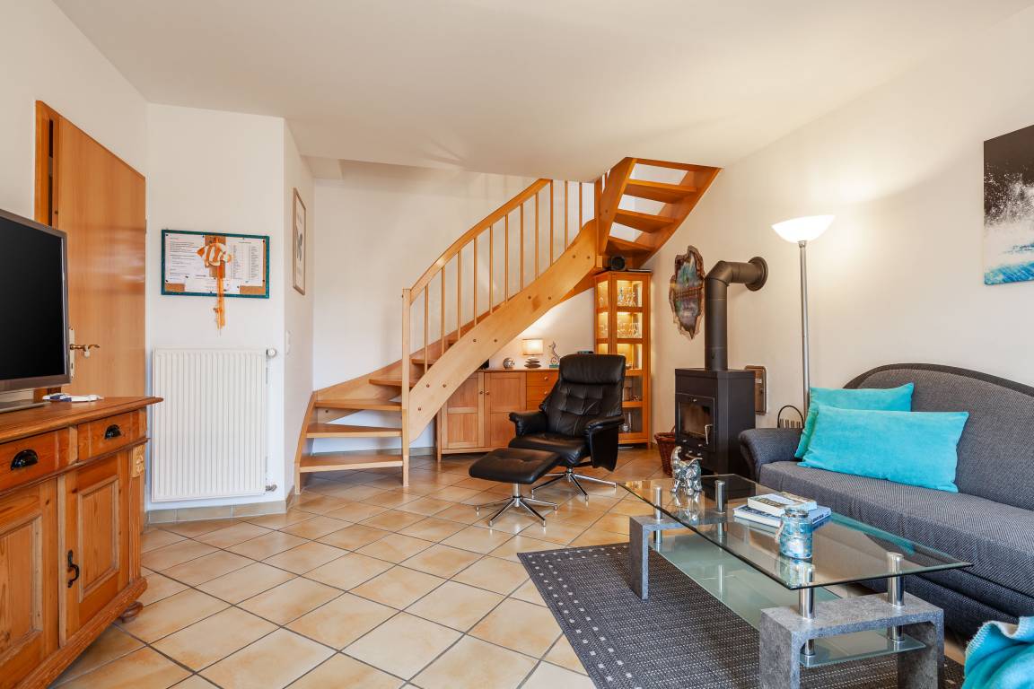 Der offene Wohnbereich mit integrierter, voll ausgestatteter Küche, lädt zum gemeinsamen Kochen und Verweilen ein.Für den perfekten Start in den Tag steht Ihnen eine Kaffeemaschine zur Verfügung.Ein Cerankochfeld mit Backofen,eine Mikrowelle,ein Geschirrspüler sowie eine Waschmaschine sind ebenfalls vorhanden, um Ihnen den Alltag zu erleichtern.Zur weiteren Ausstattung des Ferienhauses gehört ein gemütlicher Kaminofen im Wohnbereich, der an kühlen Tagen für wohlige Wärme sorgt.Auch ein Internet- WLAN-Anschluss ist vorhanden, damit Sie auch im Urlaub immer online sein können.