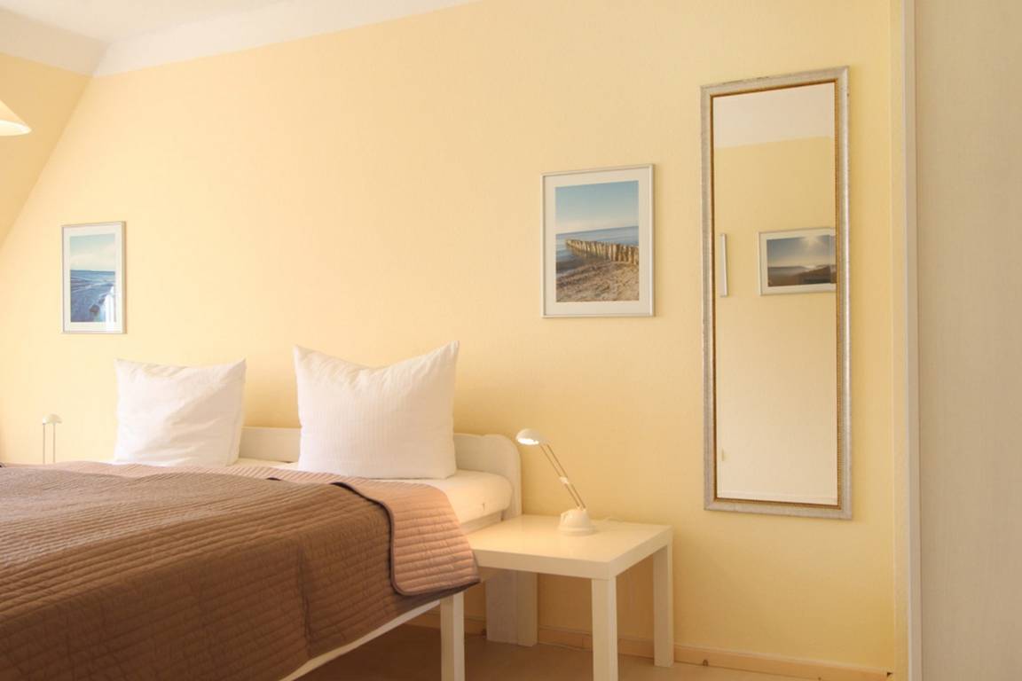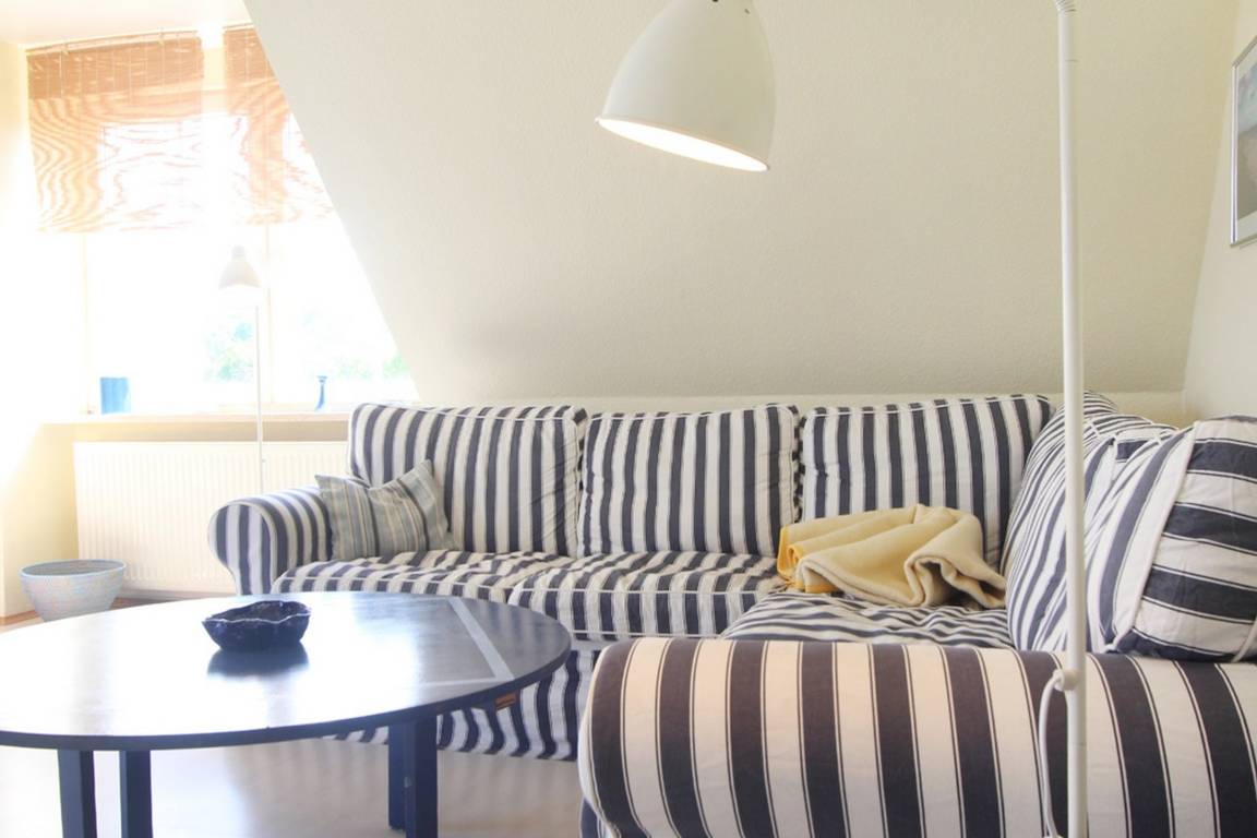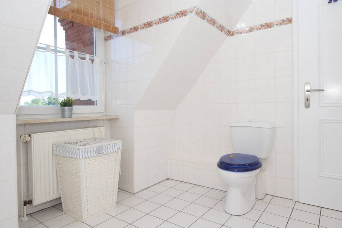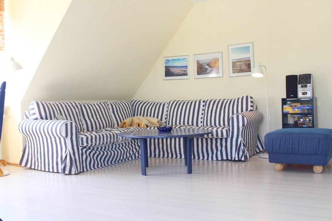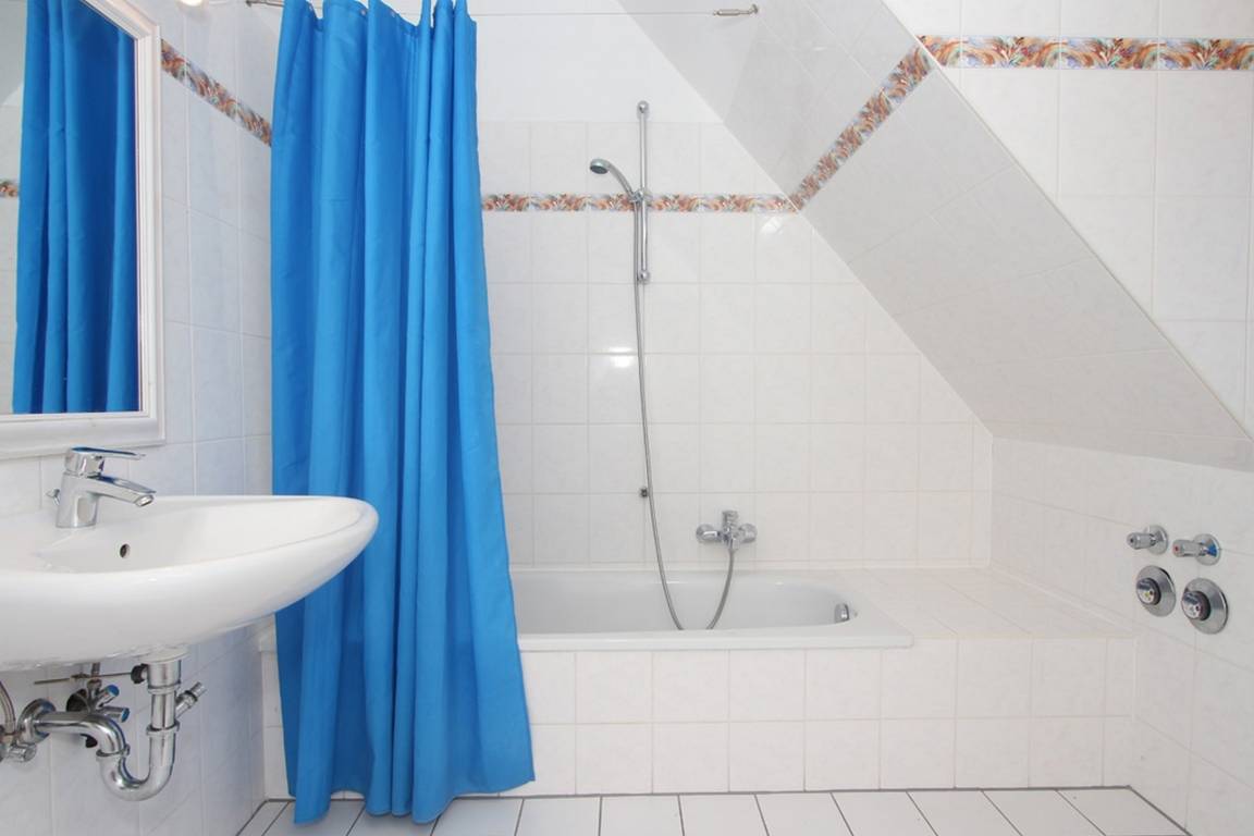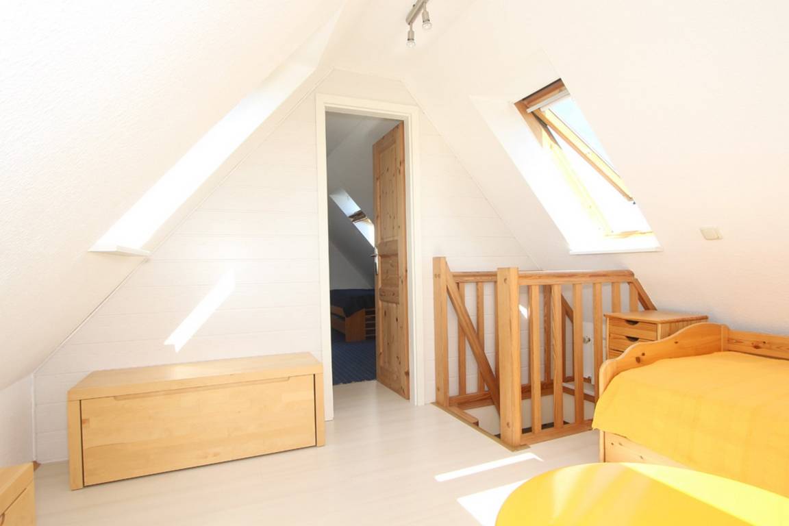 Ebenfalls besitzt die geräumige Ferienwohnung zwei separate Schlafzimmer, von denen das im unteren Bereich der Wohnung mit Doppelbett und das zweite - im Dachgeschoss - mit zwei Einzelbetten ausgestattet ist.