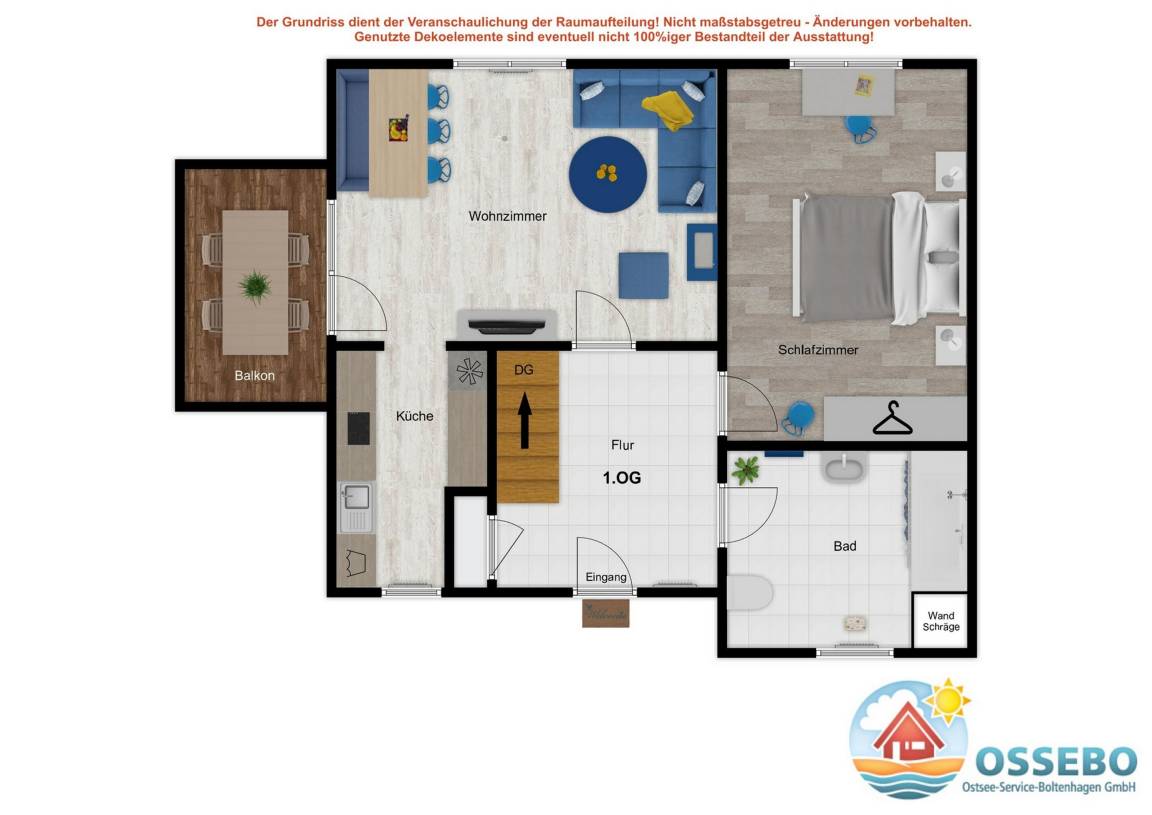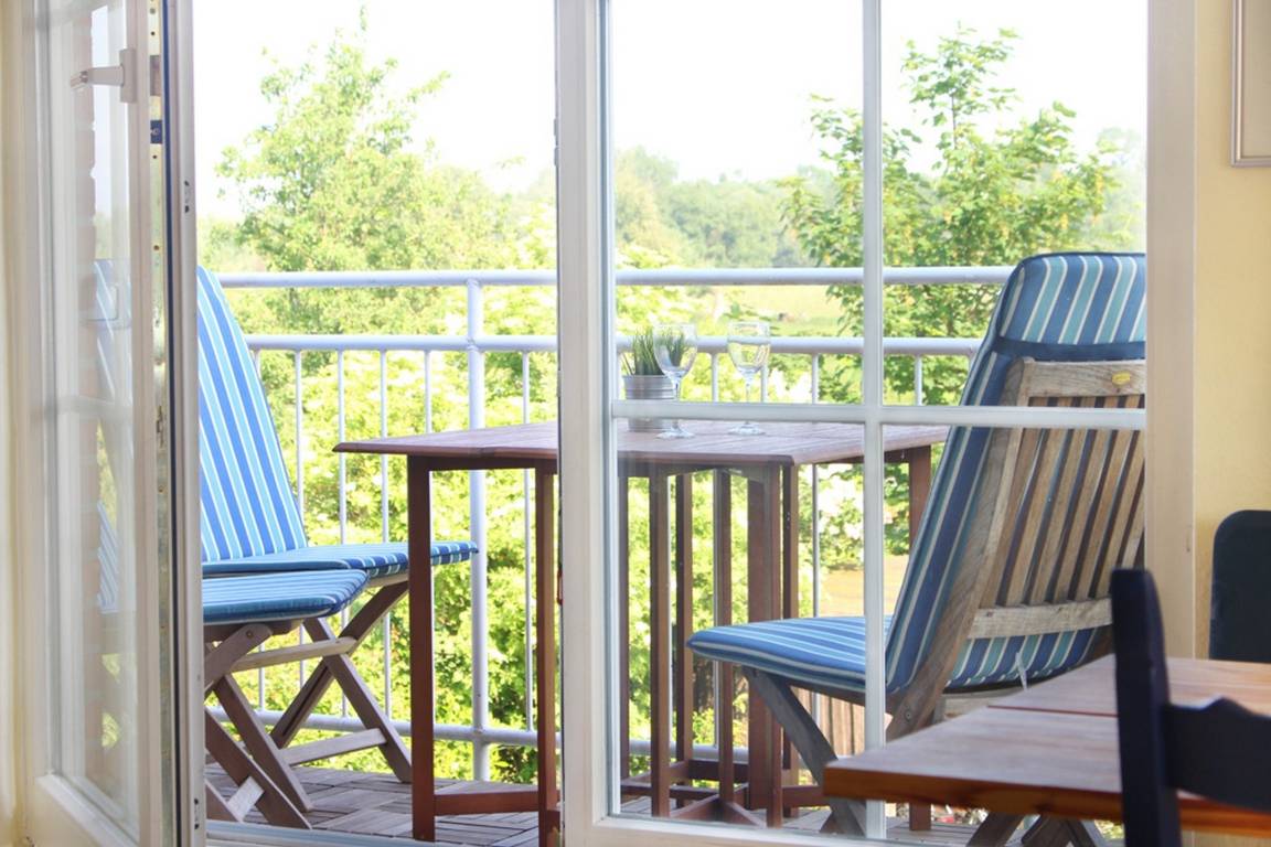 Im offenen Wohn-/Essbereich im im unteren Bereich gehören SAT-TV und Stereoanlage zur Grundausstattung. Von hier aus gelangen Sie auch auf den möblierten Balkon mit herrlichem Ausblick ins Grüne.