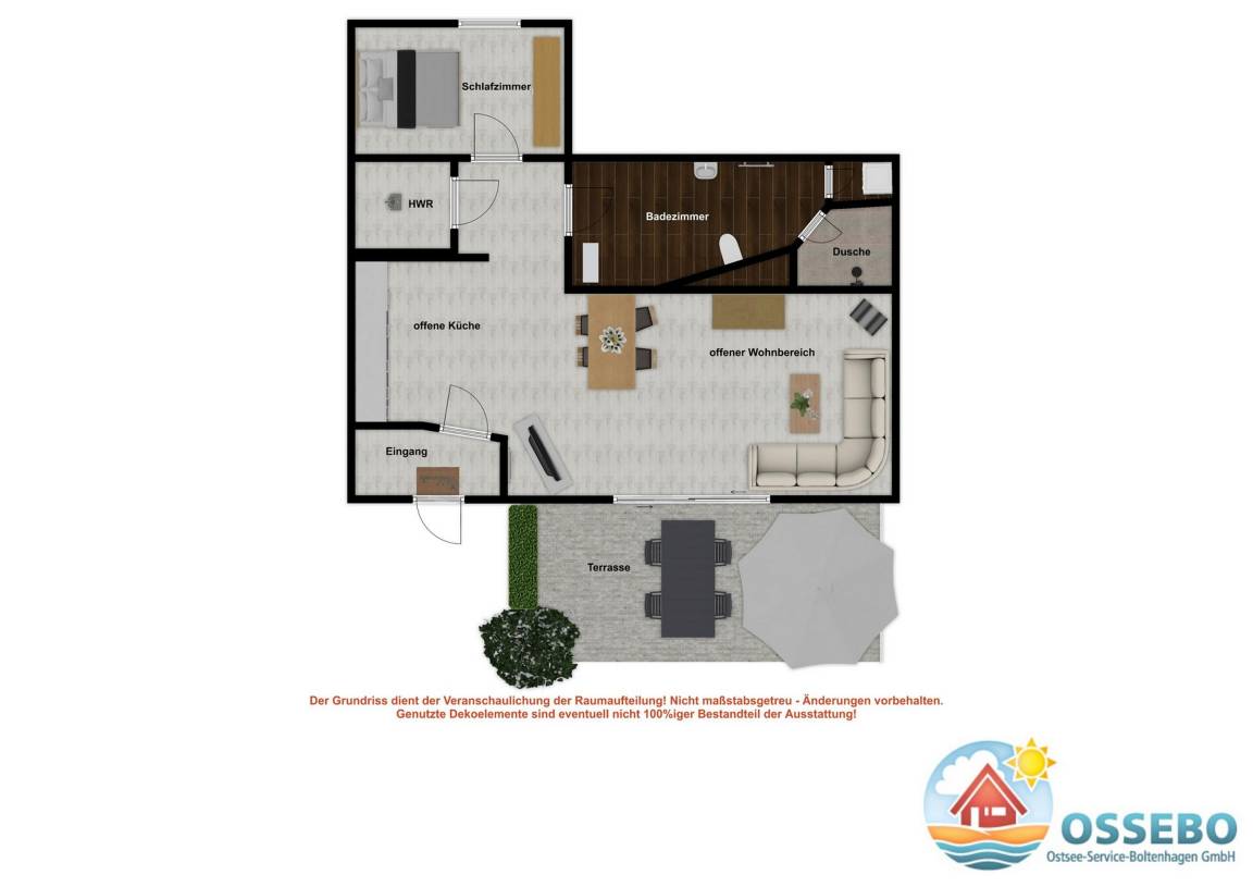 Diese 2-Zimmer-Ferienwohnung mit Kamin im Ostseebad Boltenhagen ist modern und komfortabel eingerichtet.