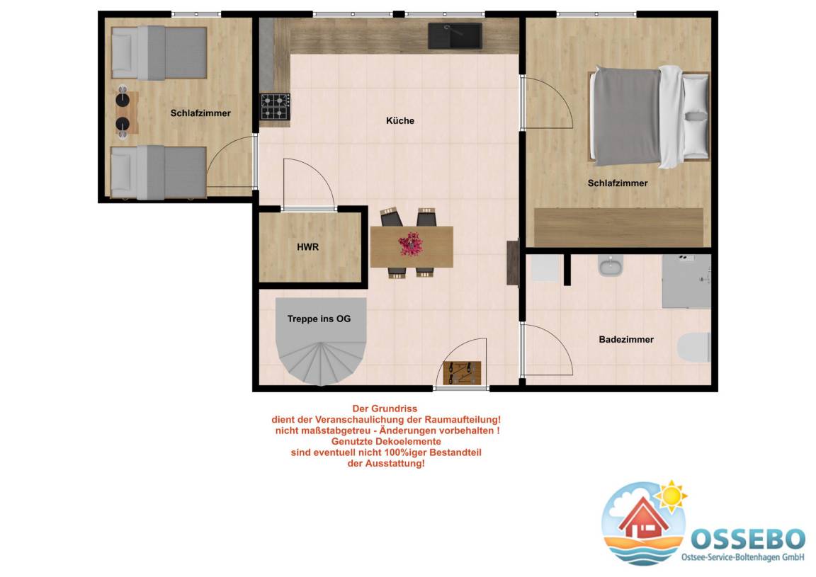65 m² Ferienwohnung ∙ 2 Schlafzimmer ∙ 4 Gäste