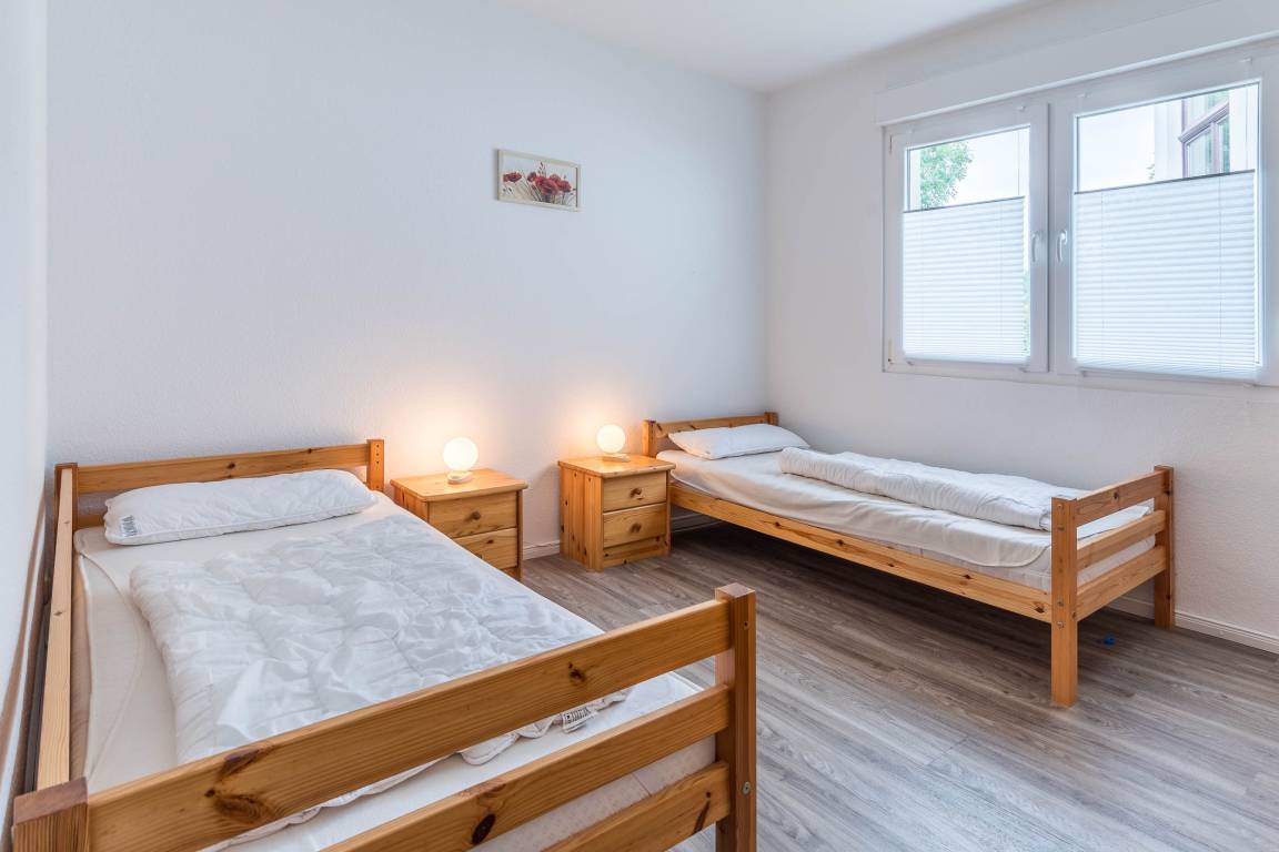Urlaub muss nicht immer teuer sein. Es handelt sich hier um einen preisgünstigeren Nichtraucher-Bungalow, welcher auf 2 Wohnparteien aufgeteilt ist - ideal also für größere Gruppen oder befreundete Familien. Jede Wohnung hat einen eigenen Eingang. Das Rauchen ist auf der Terrasse möglich. Beide Schlafzimmer verfügen über einen Rollladen.